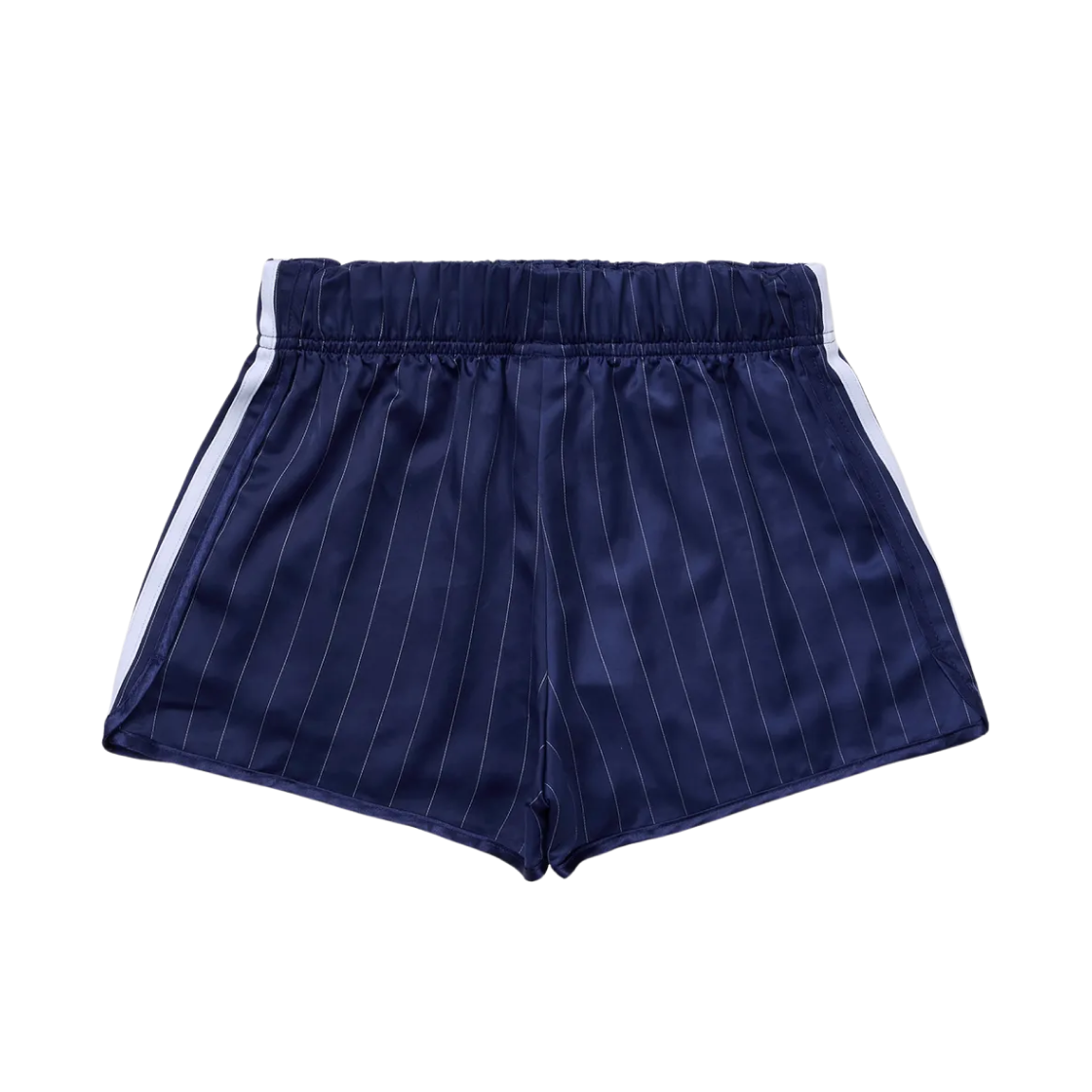 (W) Adidas Pinstripe Satin Shorts Dark Blue - KR Sizing