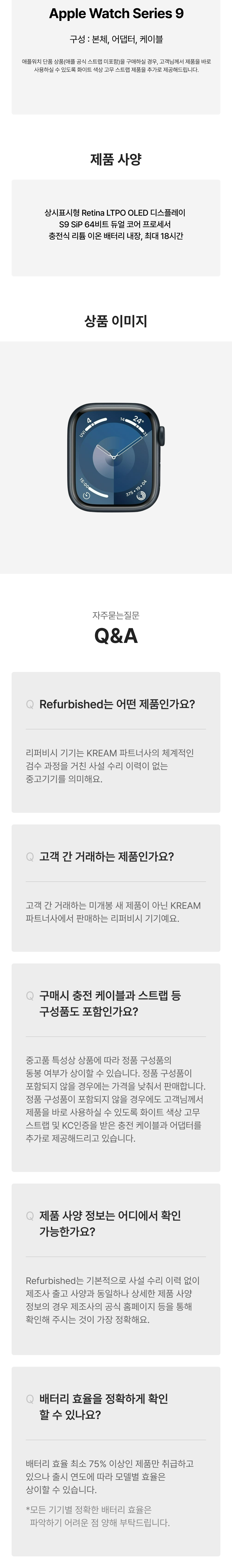 [A등급] 리퍼비시 애플 워치 9 41MM 셀룰러 미드나이트 알루미늄 케이스