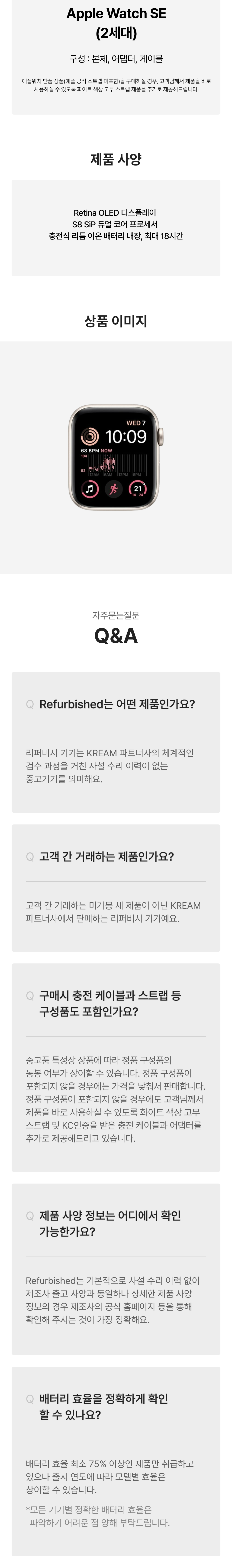 [S등급] 리퍼비시 애플 워치 SE 2 44mm GPS 스타라이트 알루미늄 케이스