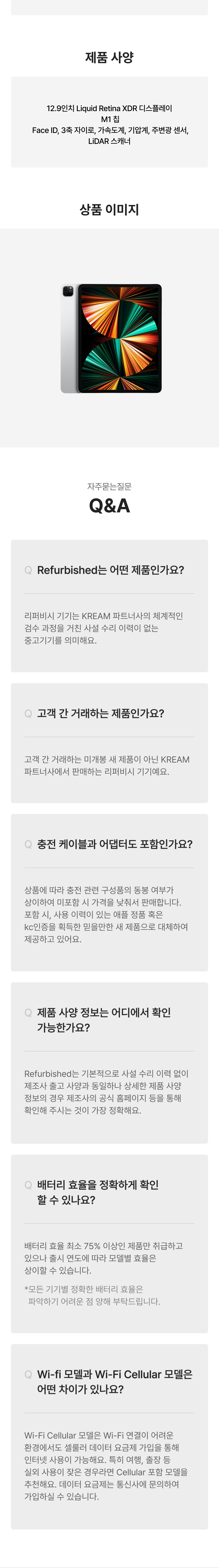 [A등급] 리퍼비시 아이패드 프로 12.9 5세대 cell M1 256기가 실버