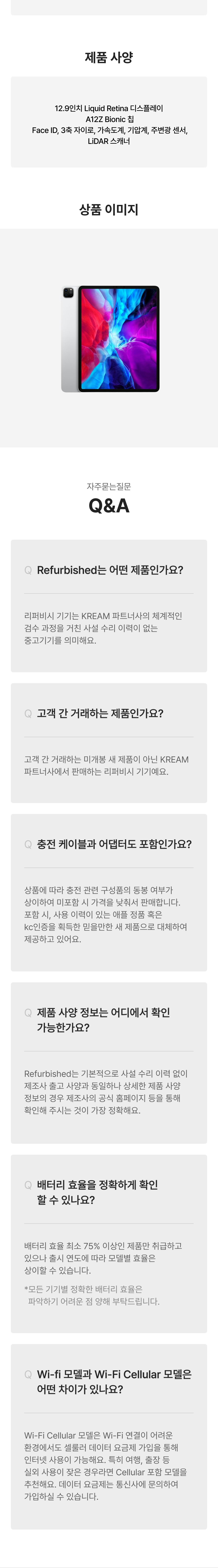 [A등급] 리퍼비시 아이패드 프로 12.9 4세대 wifi A12Z Bionic 128기가 실버