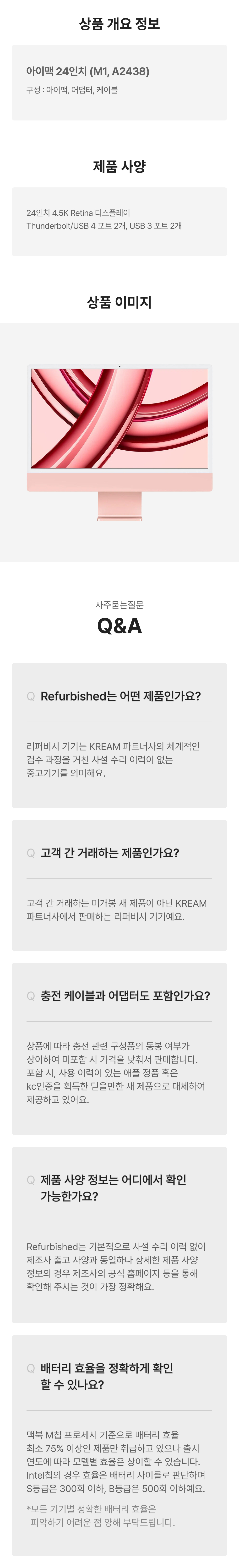 [S등급] 리퍼비시 2021 아이맥 24 M1 512기가 SSD 8기가 램 레드