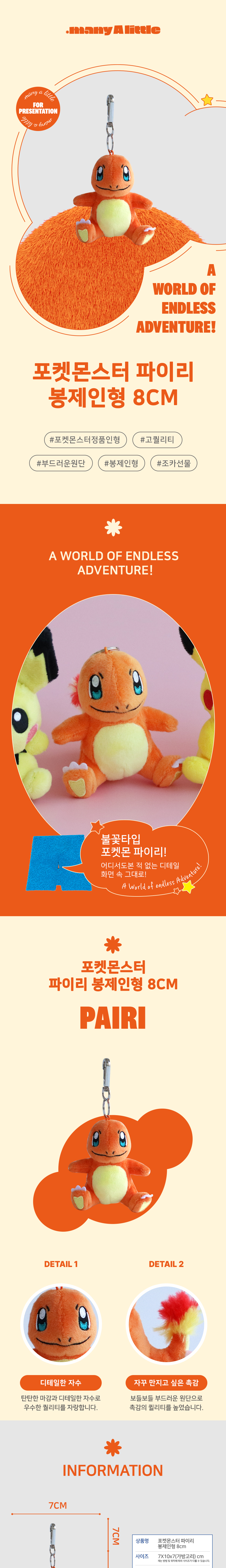매니어리틀 포켓몬 파이리 8cm 키링