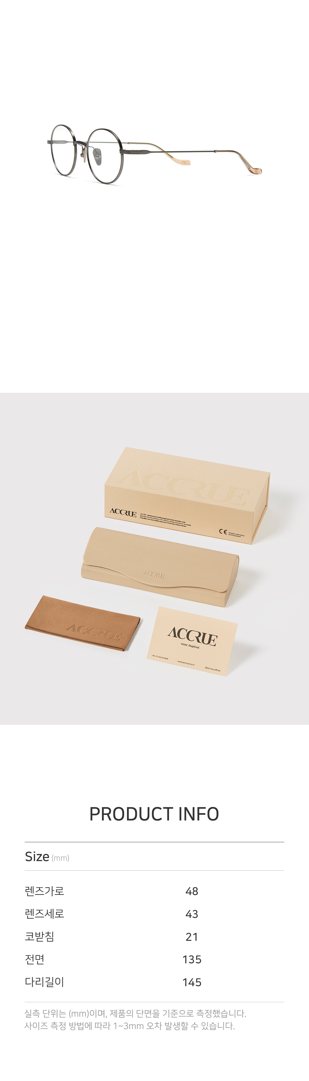 *안경테에 장착되어있는 렌즈는 프레임의 형태의 변형을 막기 위한 플라스틱 데모렌즈입니다.
