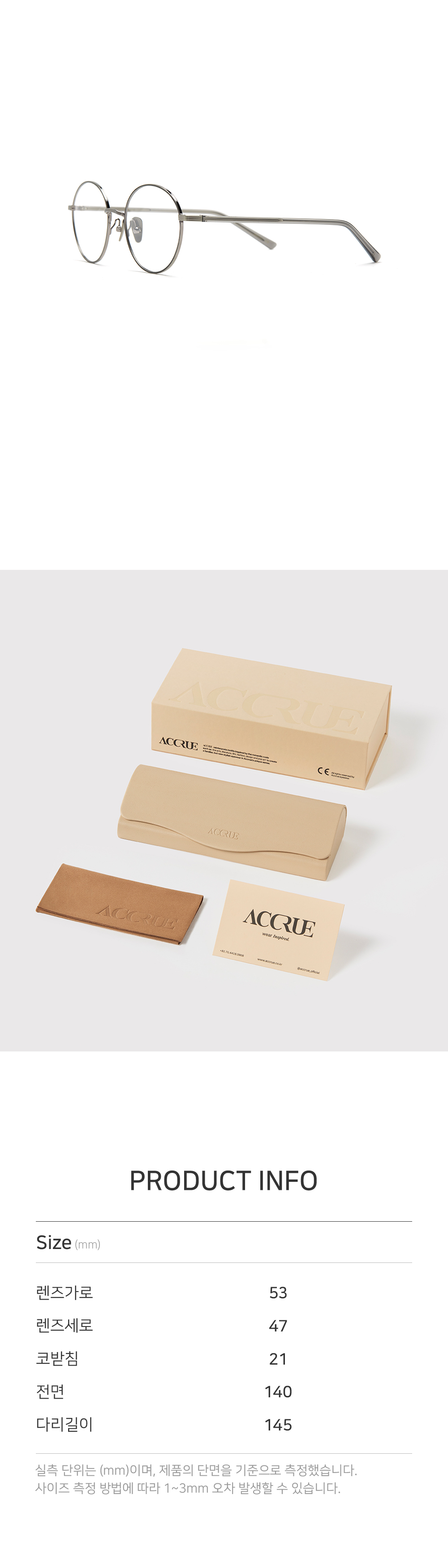 *안경테에 장착되어있는 렌즈는 프레임의 형태의 변형을 막기 위한 플라스틱 데모렌즈입니다.
