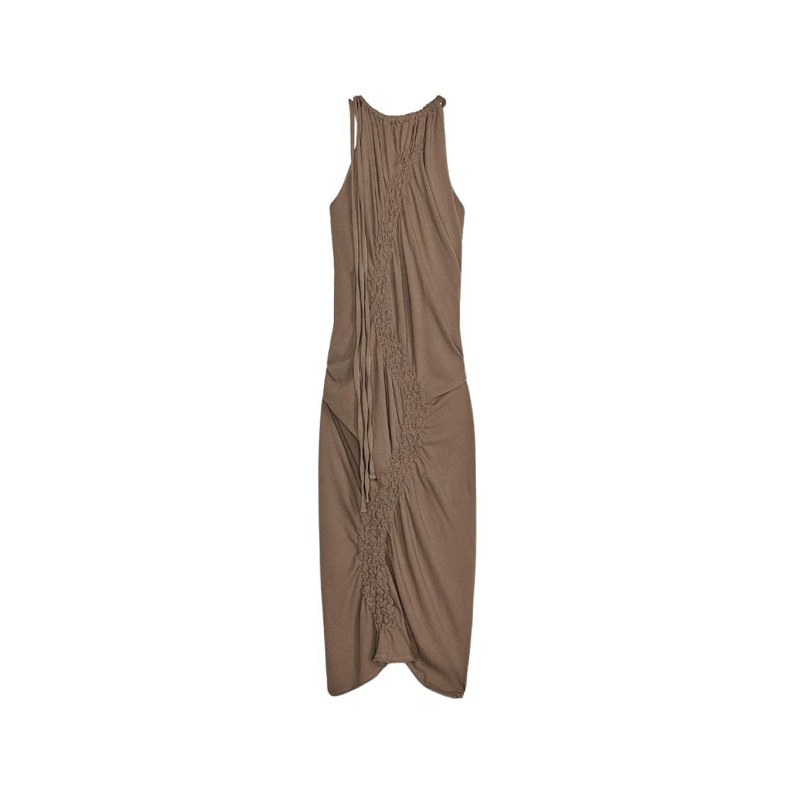 (W) Zara x Fanglu Lin Gathered Midi Dress Khaki