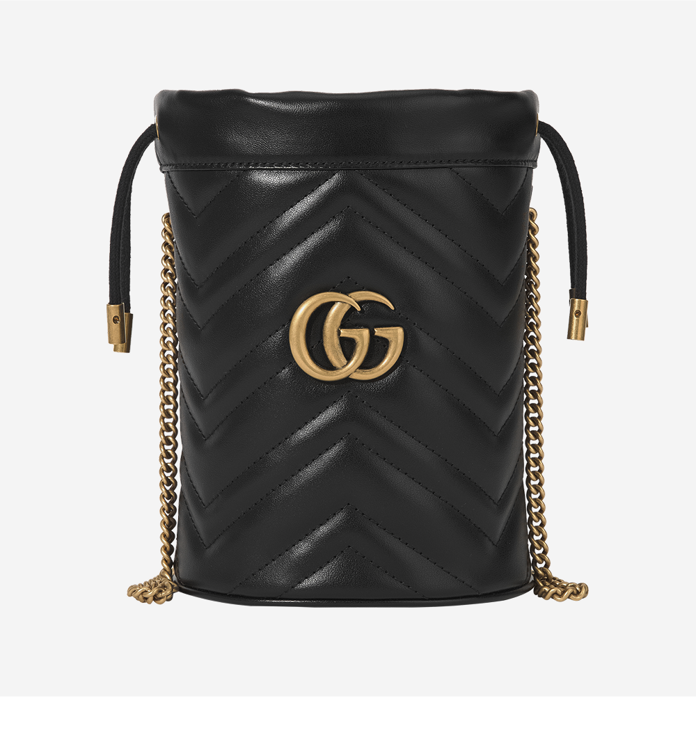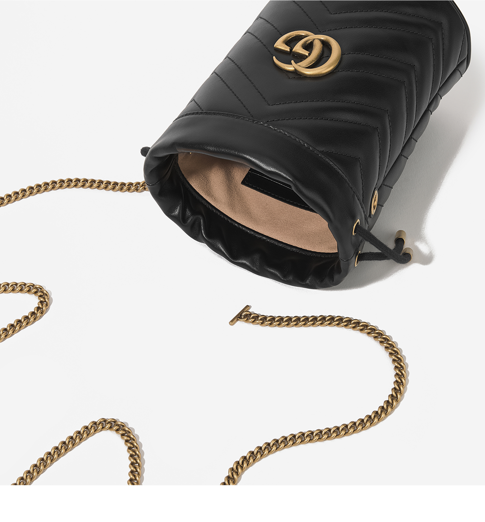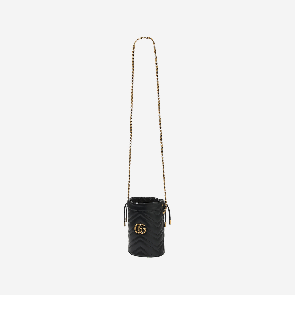 구찌 GG 마몽 마틀라세 미니 버킷백 블랙