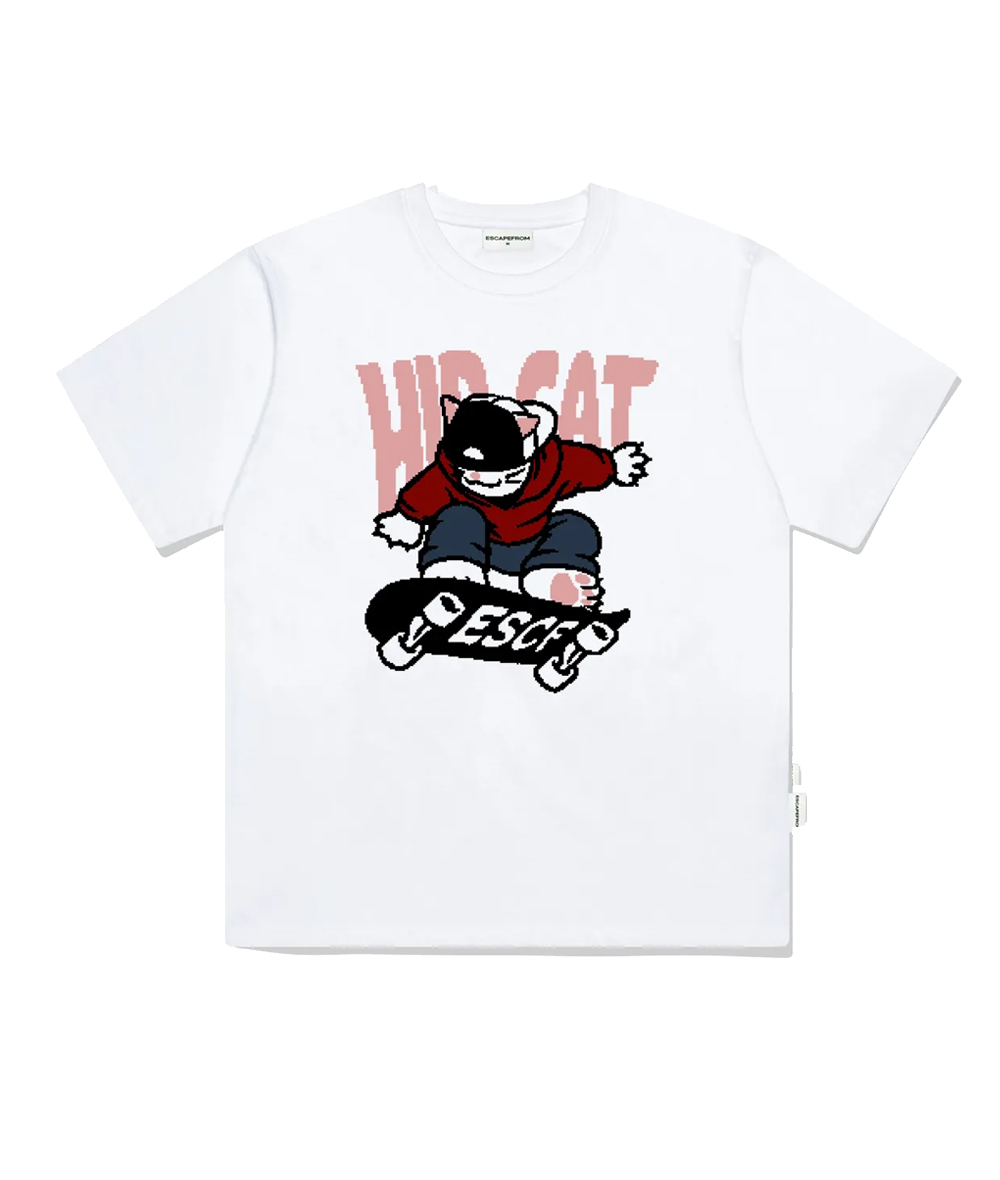 Escapefrom Color Hip Cat Skateboard Print Overfit Short Sleeve T-shirt White