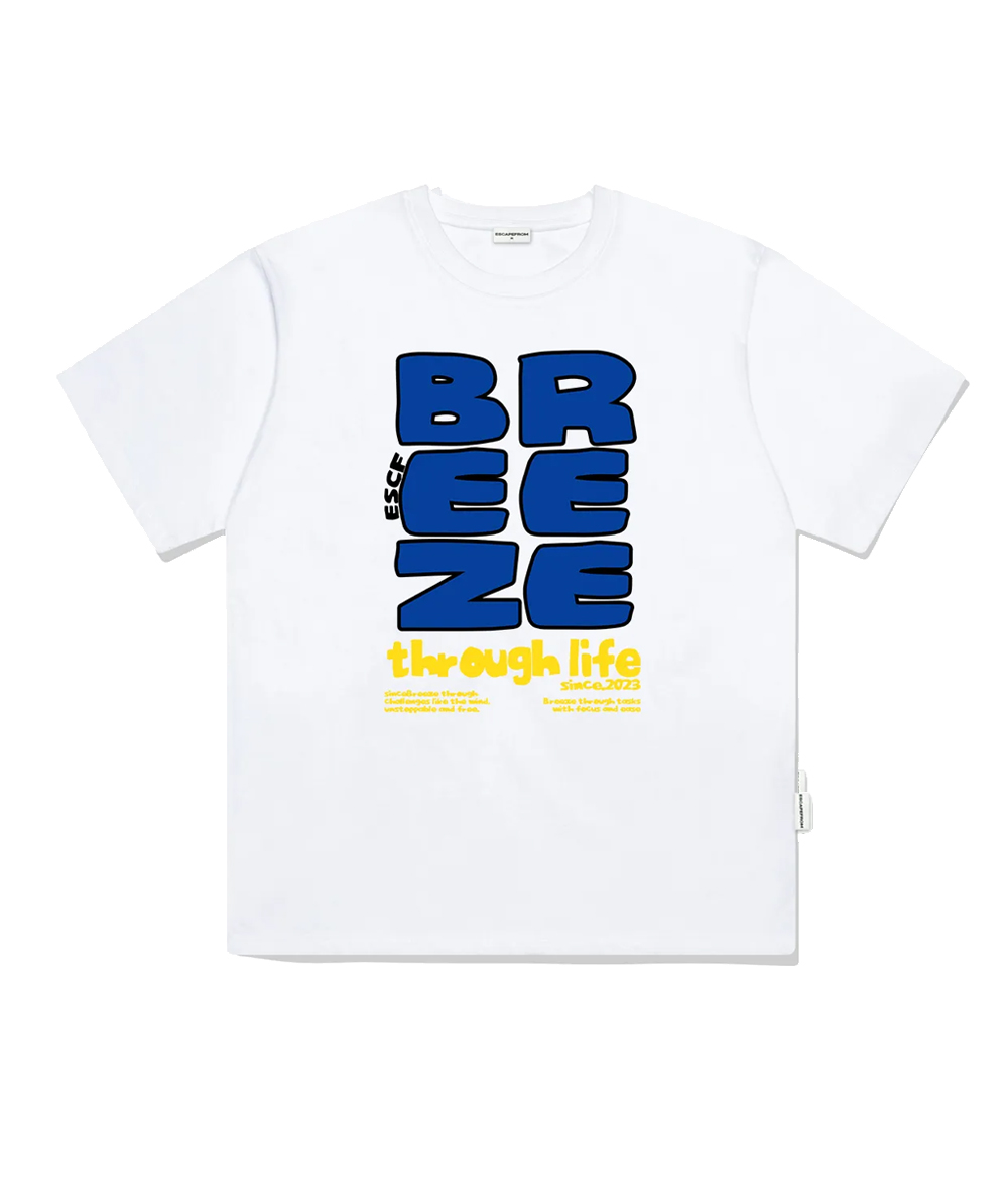 이스케이프프롬 블루 브리즈 프린트 오버핏 반팔티 화이트
