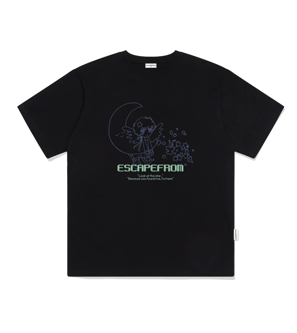 Escapefrom Look at the Star Printed Over Fit Short Sleeve Black