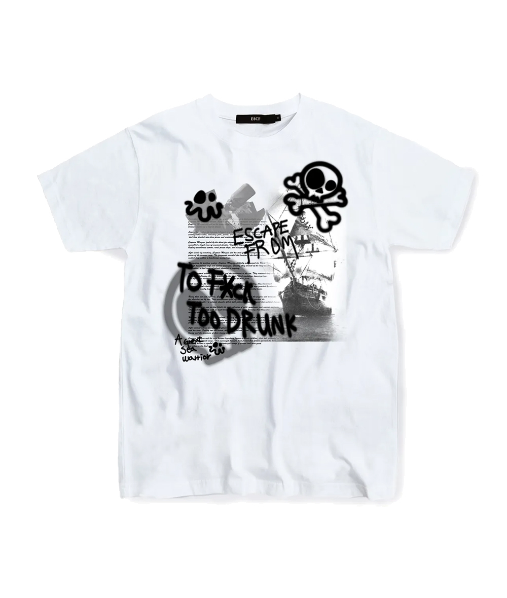 이스케이프프롬 블랙 파이럿 쉽 프린트 티셔츠 화이트
