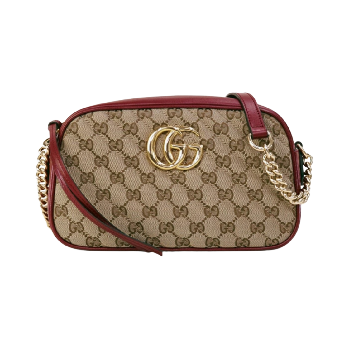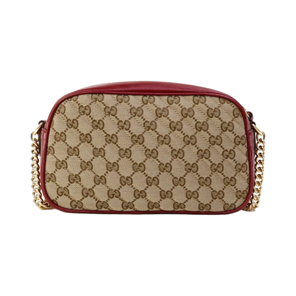 Gucci GG Marmont Original G Canvas Small Shoulder Bag Beige Ebony Red