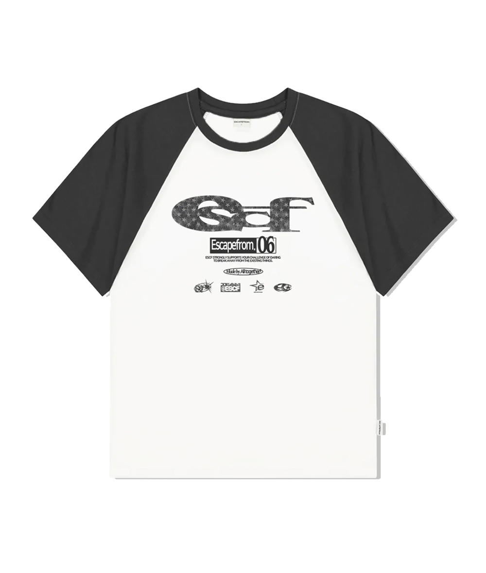 Escapefrom Star Denim ESCF Logo Collage Printed Raglan Color Combi Short Sleeve Charcoal