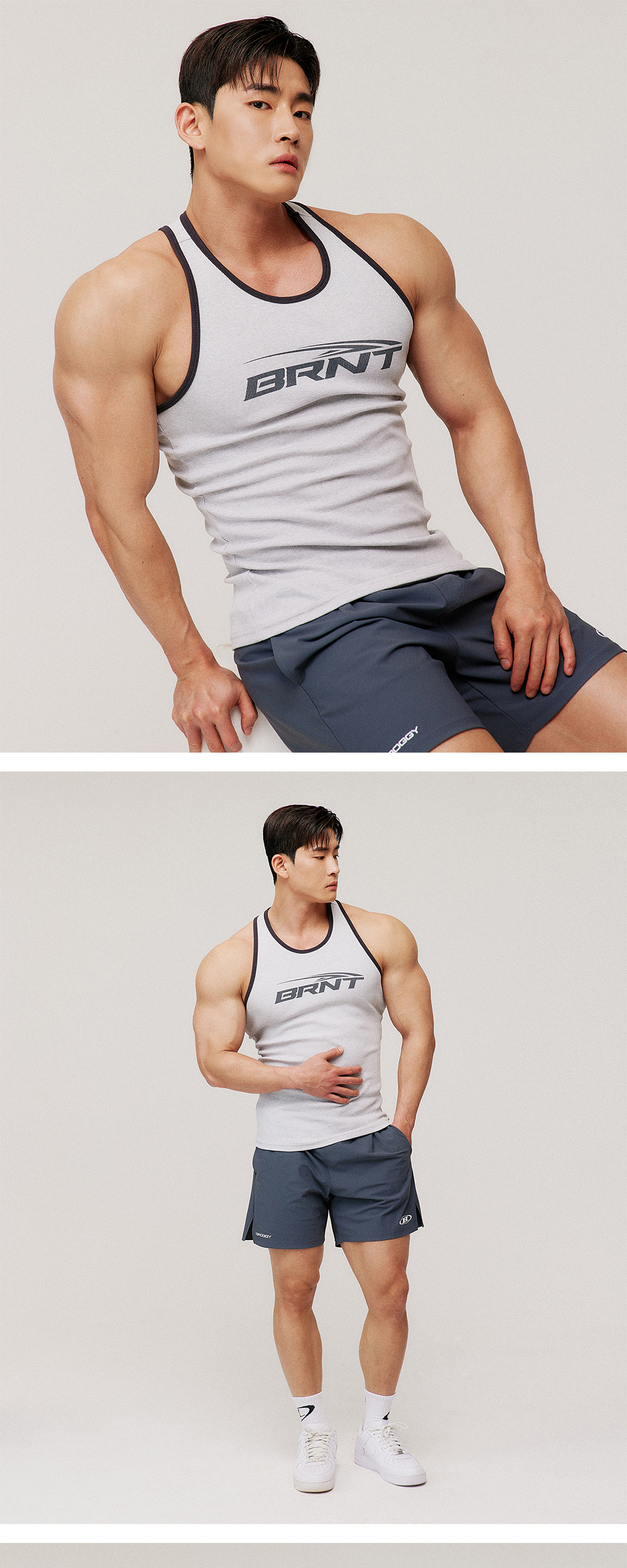 [DETAILS] * BRNT 리브드 슬리브리스 - 코튼 혼방 골지 원단 - 그래픽 로고 포인트 - 세탁 시 늘어남 없는 어깨 모빌론 테이핑 - 배색 디테일 - NEW 머슬핏 Material : Cotton 95% Polyurethane 5% Fitting : HJ 3 Size, 180cm, 90kg