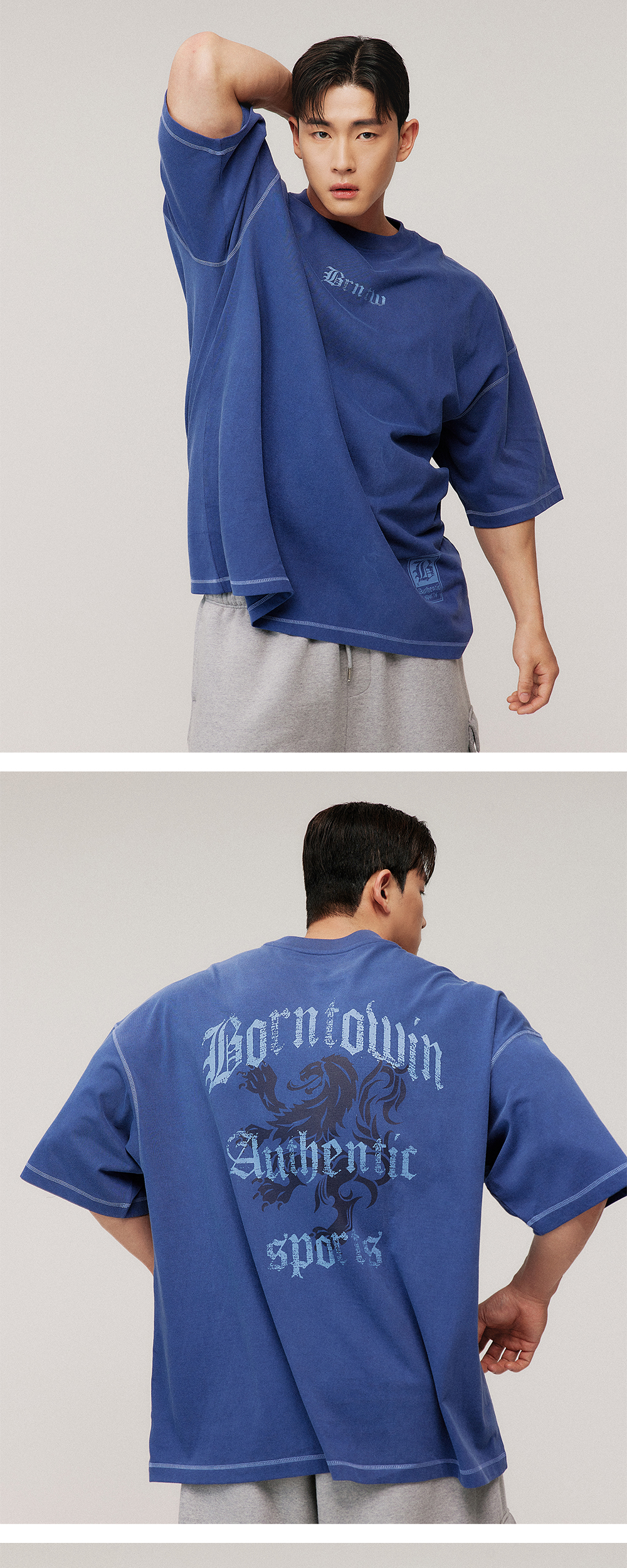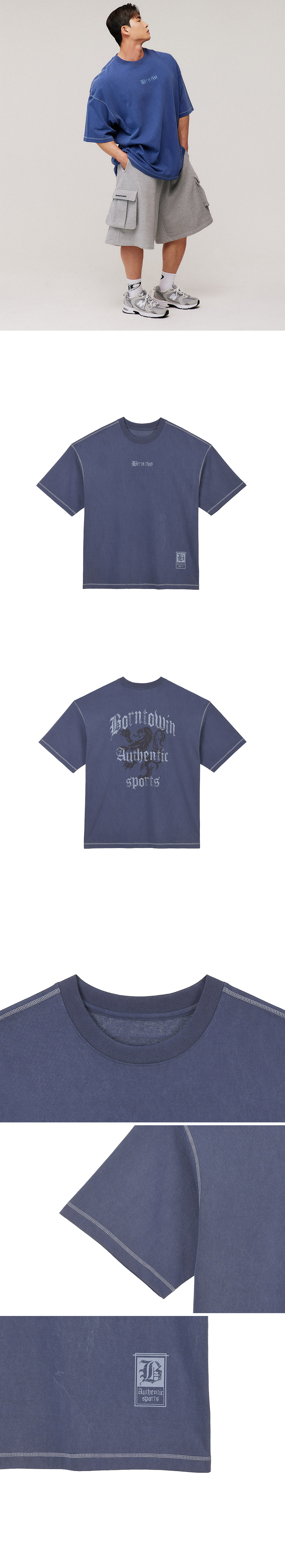 본투윈 피그먼트 크랙 레터 엑스트라핏 티셔츠 데드 블루