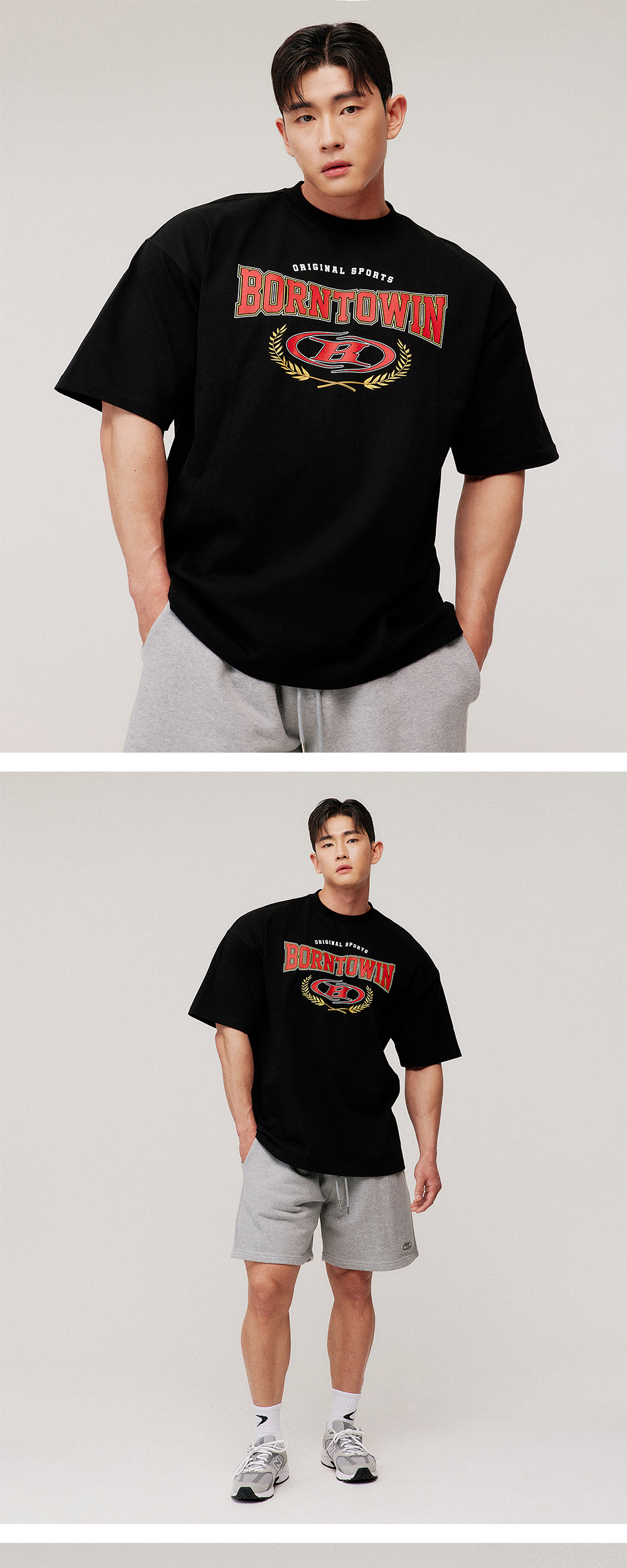 [DETAILS] * 심볼 B 빅토리 세미 오버핏 티셔츠 - COTTON 100% - 그래픽 로고 포인트 - 세탁 시 늘어남 없는 어깨 모빌론 테이핑 - 세미 오버사이즈 Material : Cotton100% Fitting : DJ 3 Size, 183cm, 88kg