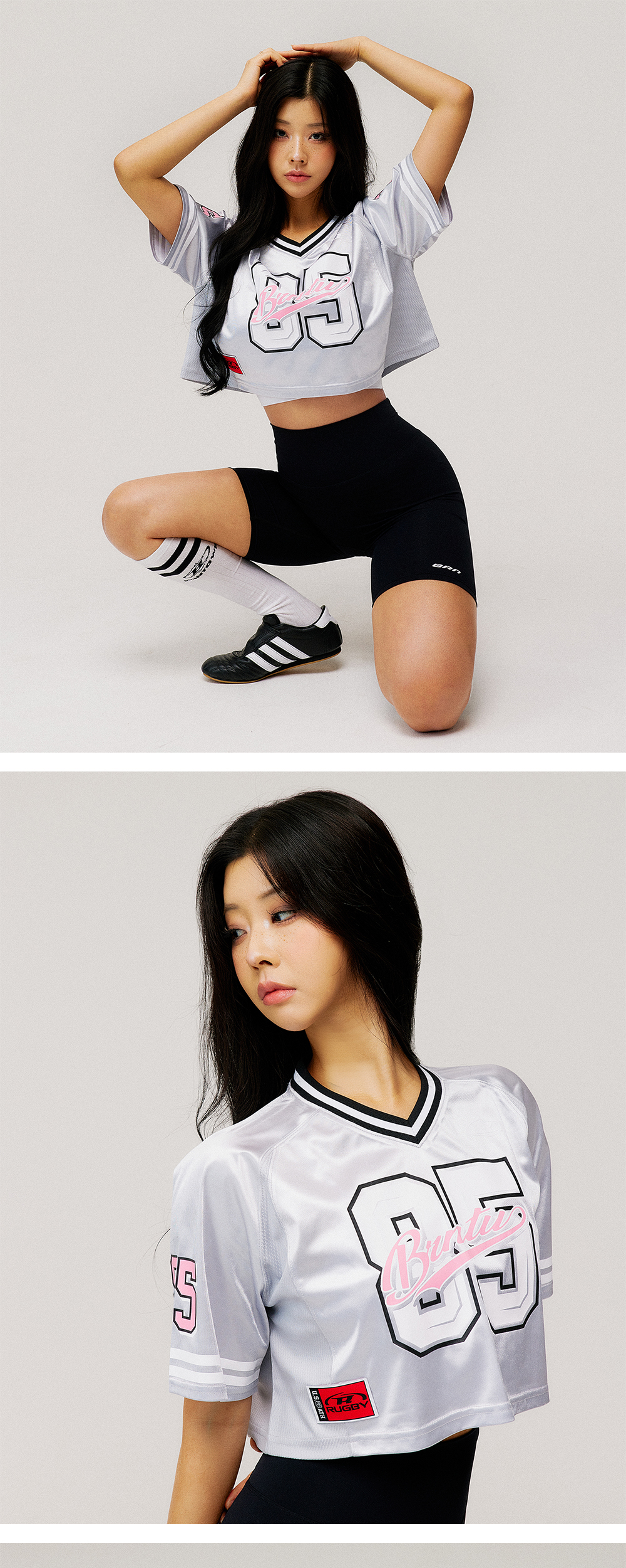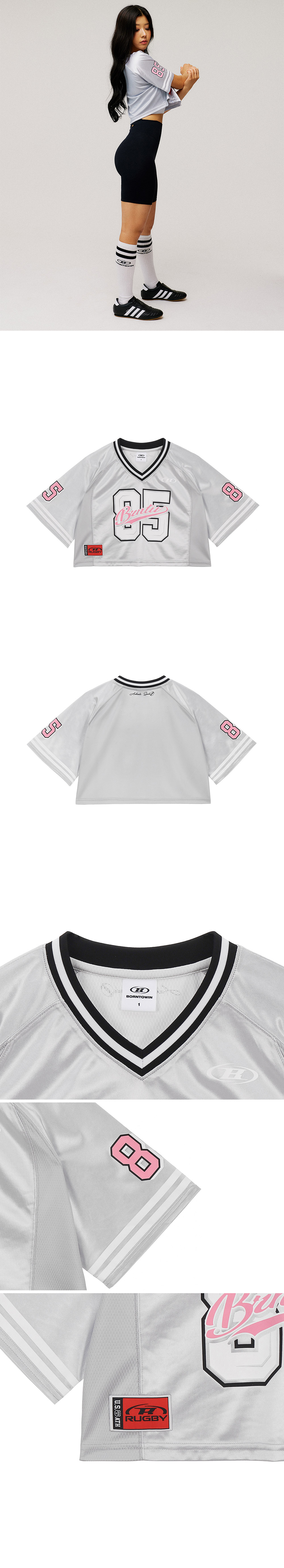 [DETAILS] * W 럭비 저지 크롭 티셔츠 - 흡습속건 메쉬 원단 - 자수 로고 포인트 - V넥 디테일 - 사이드 메쉬 디테일 - 시즈널 라벨 포인트 - 크롭핏 Material : Polyester 100% Fitting : DB 1 Size, 171cm, 57kg