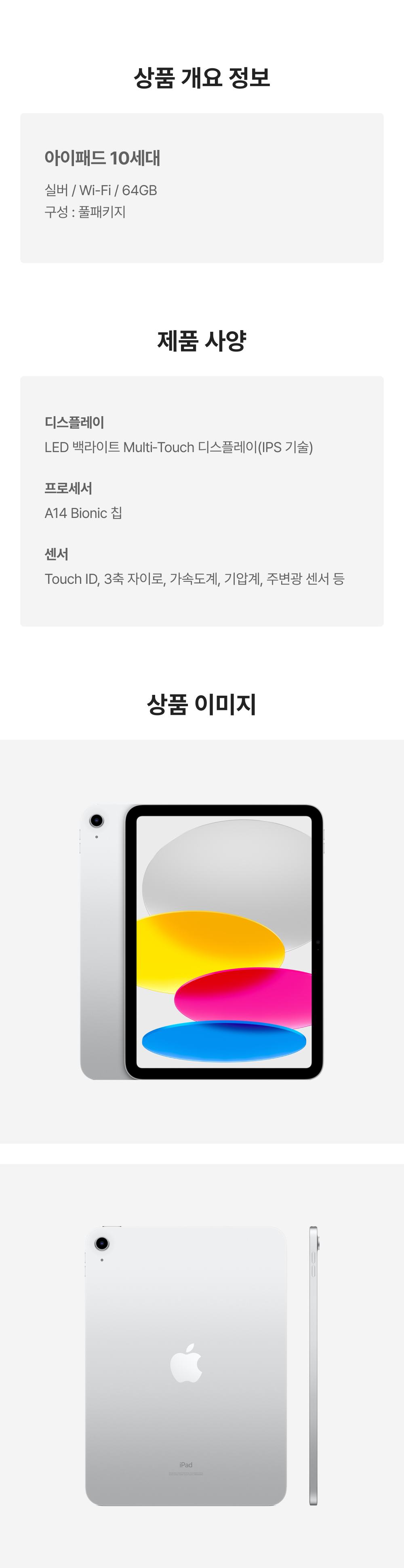 [B등급] 리퍼비시 아이패드 10세대 wifi A14 Bionic 64기가 실버