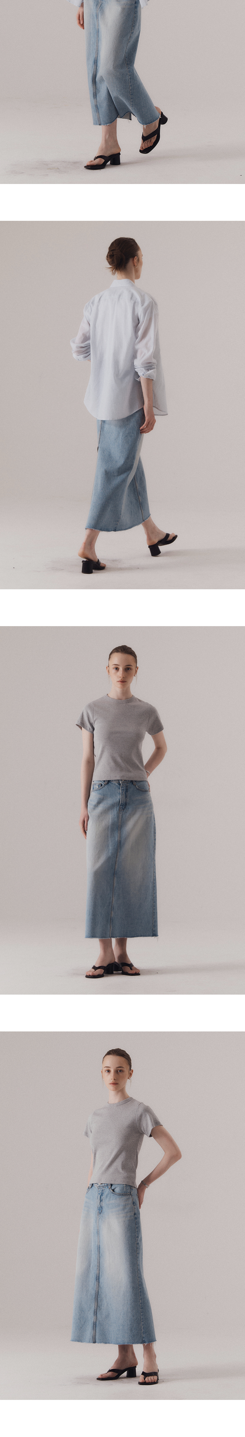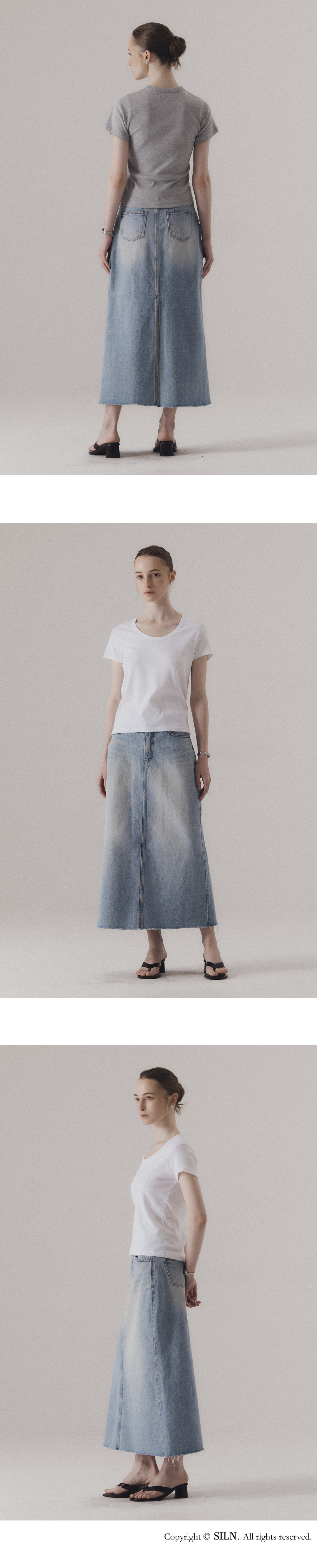 힘을 뺀 듯 자연스러운 실루엣과 디테일이 어우러진 데님 스커트입니다. 은은한 중청 컬러와 과하지 않은 워싱이 데일리하게 어우러지며, 밑단은 데끼 마감으로 마무리해 포인트를 더했습니다. 허리선은 골반에 자연스럽게 위치하도록 설계되어 편안한 착용감을 제공하며, 여유 있는 핏과 뒷중심의 슬릿 디테일이 활동성과 균형감을 더합니다. 무심한 듯 담백하게 떨어지는 실루엣으로 다양한 상의와 자연스럽게 어우러지며, 사계절 일상에 착용가능합니다. 허리 뒤쪽에는 SILN의 시그니처 가죽 로고 탭이 부착되어 있어, 은은하게 포인트를 더했습니다.