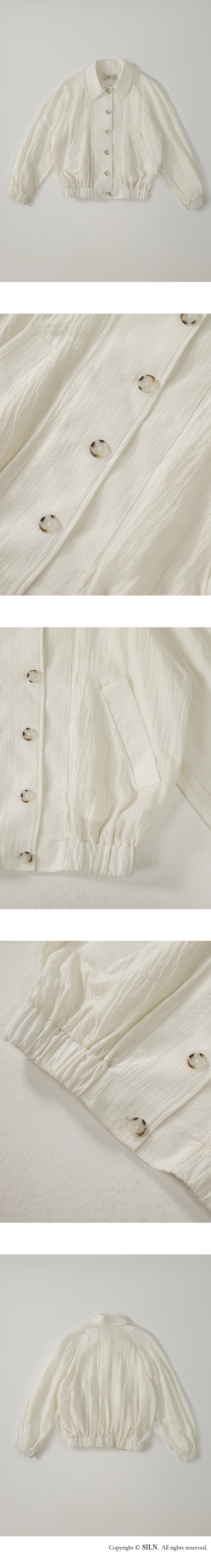 얇고 통기성 좋은 원단으로 제작되어 피부에 달라붙지 않고 가볍게 떨어지며, 소재 특유의 청량한 무드가 돋보입니다. 자연스럽게 어깨선을 감싸는 래글런 소매와 넉넉한 핏으로 체형에 구애 없이 편안한 착용감을 선사합니다. 은은하게 흐르는 실루엣과 가벼운 비침이 조화를 이뤄 무더운 날씨에도 부담 없이 가볍게 걸칠 수 있습니다. 가벼운 버튼 여밈과 활용도 높은 포켓 디테일로 실용성을 더하였습니다. 하의 Frayed hem cotton skirt (BLACK), Classic contour bermuda pants (WHITE)를 착용하였습니다.
