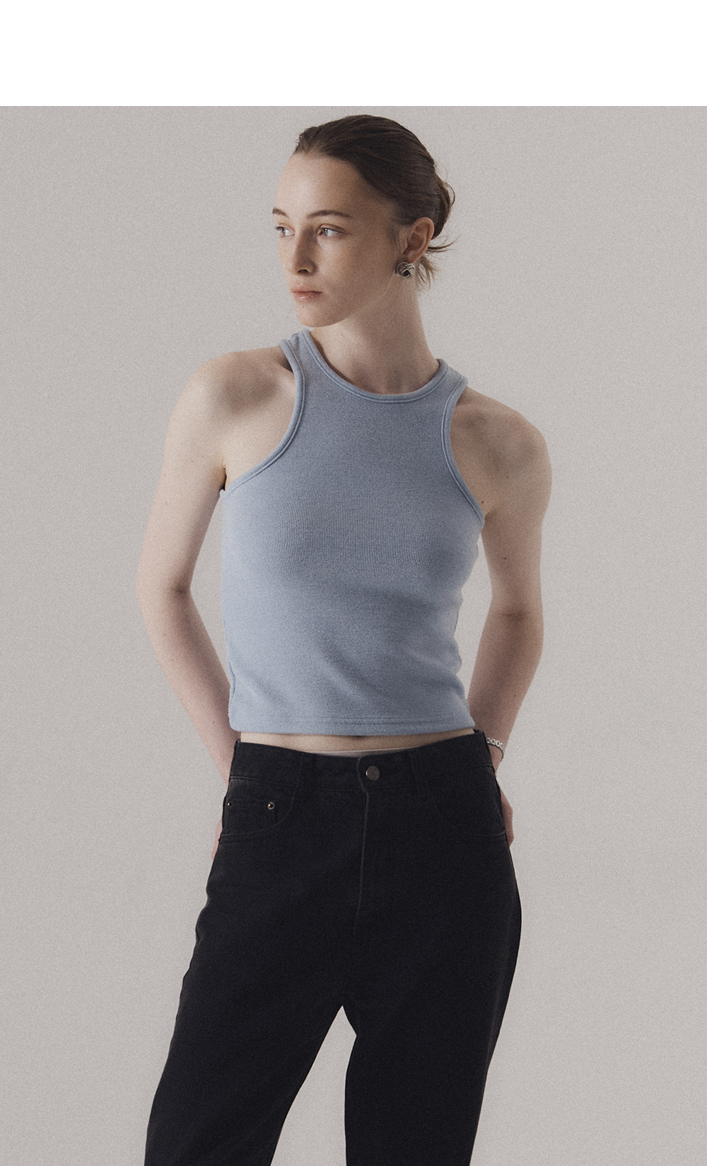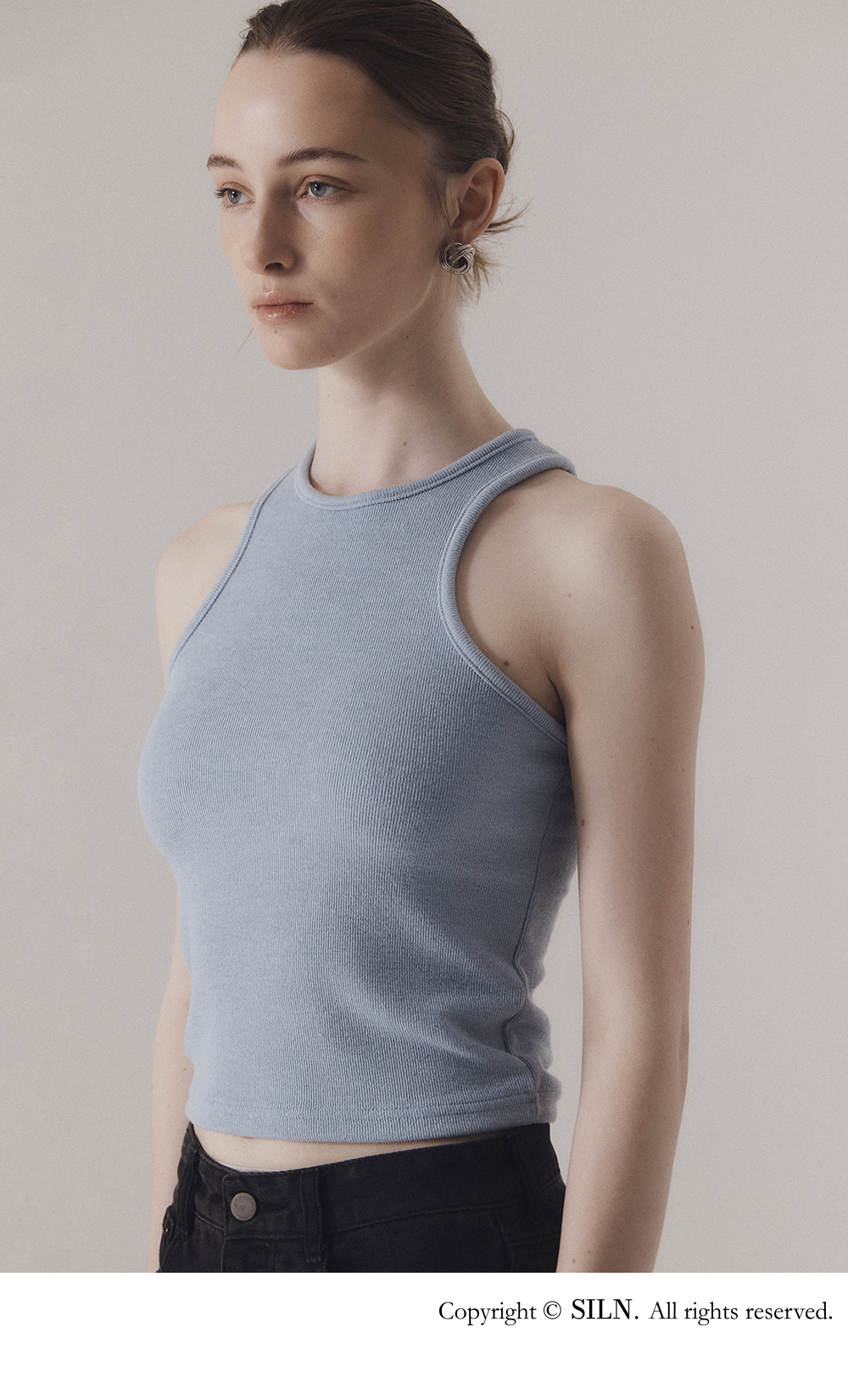 클래식 캐주얼 스타일에서 영감을 얻은 슬리브리스입니다. 신축성이 좋은 소재를 사용하여 높은 탄력성과 편안한 착용감을 선사합니다. 탄탄한 넥 라인과 소매 라인을 위해 제 원단 바인딩 작업을 하였습니다