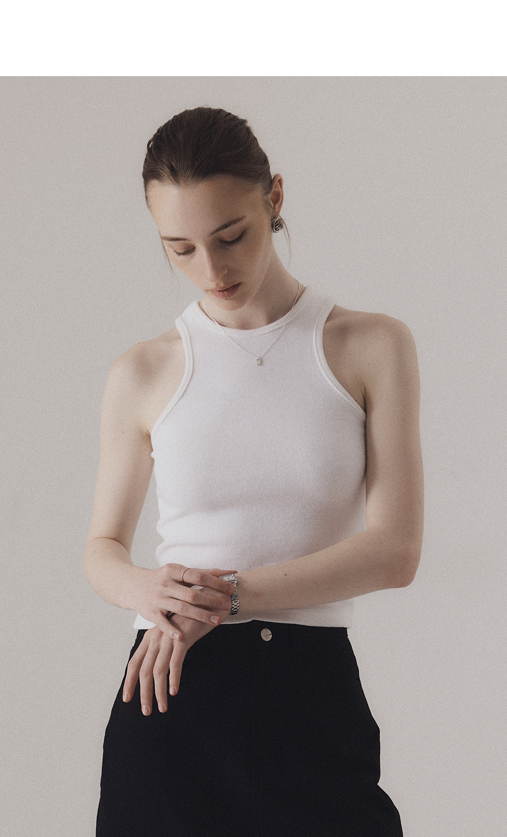 클래식 캐주얼 스타일에서 영감을 얻은 슬리브리스입니다. 신축성이 좋은 소재를 사용하여 높은 탄력성과 편안한 착용감을 선사합니다. 탄탄한 넥 라인과 소매 라인을 위해 제 원단 바인딩 작업을 하였습니다.