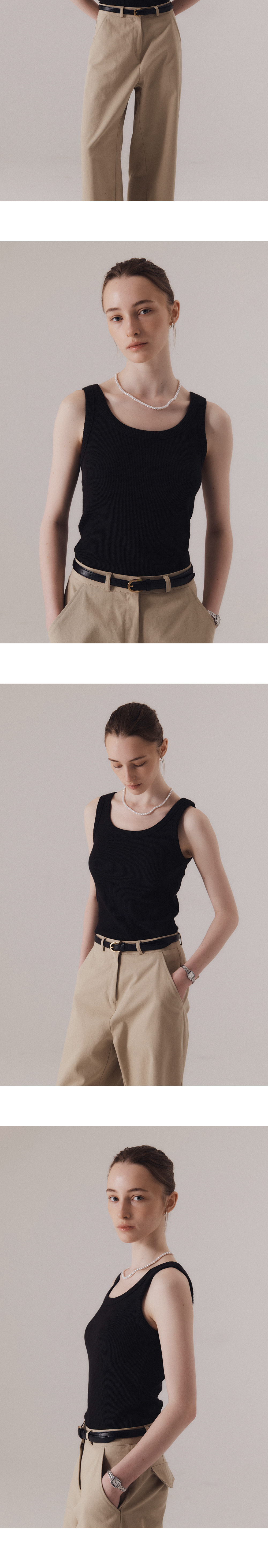 부드러운 곡선의 스쿱넥 라인이 돋보이는 클래식 니트 슬리브리스입니다. 넥 라인은 깊이감 있으면서도 과하지 않게 파여, 쇄골 라인을 은은하게 드러내며 단정한 실루엣을 선사합니다. 밀도 높은 텍스처를 사용하여, 입었을 때 흐트러짐 없이 깔끔한 핏을 선사합니다. 계절에 구애받지 않고 다양한 연출이 가능합니다. 하의 Structure cotton chino pants (BEIGE), Natural texture straight denim (CREAM)를 착용하였습니다.
