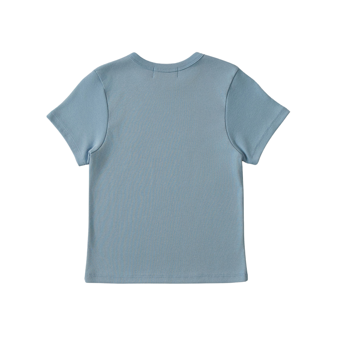 클래식 캐주얼 스타일에서 영감을 얻은 티셔츠입니다. 신축성이 좋은 후라이스 소재를 사용하여 높은 탄력성과 편안한 착용감을 선사합니다. 탄탄한 넥 라인을 위해 제 원단 바인딩 작업을 하였습니다. 하의 High-waist classic denim (BLUE)를 착용하였습니다.