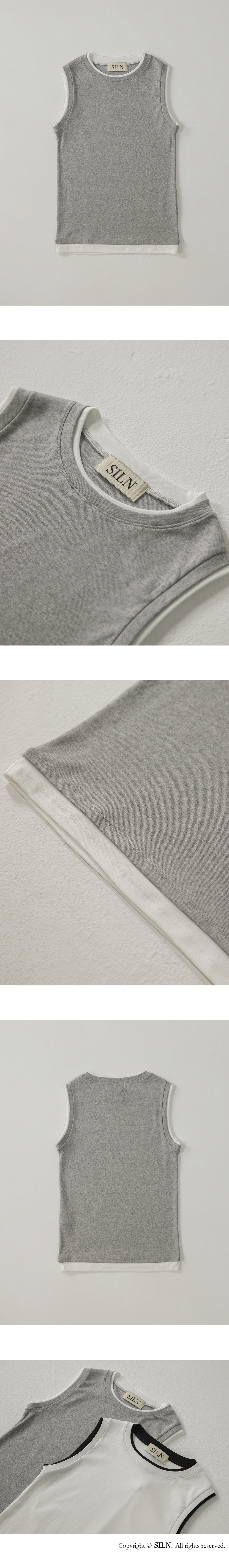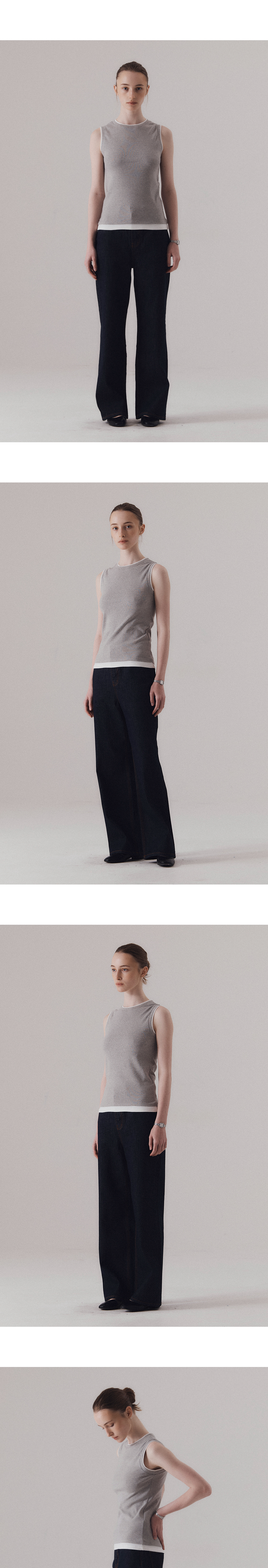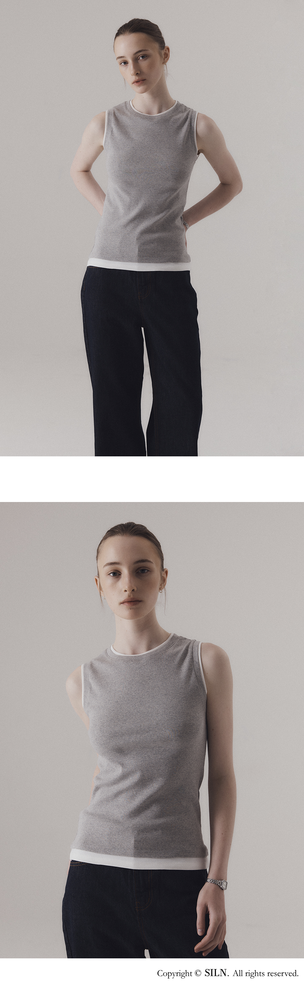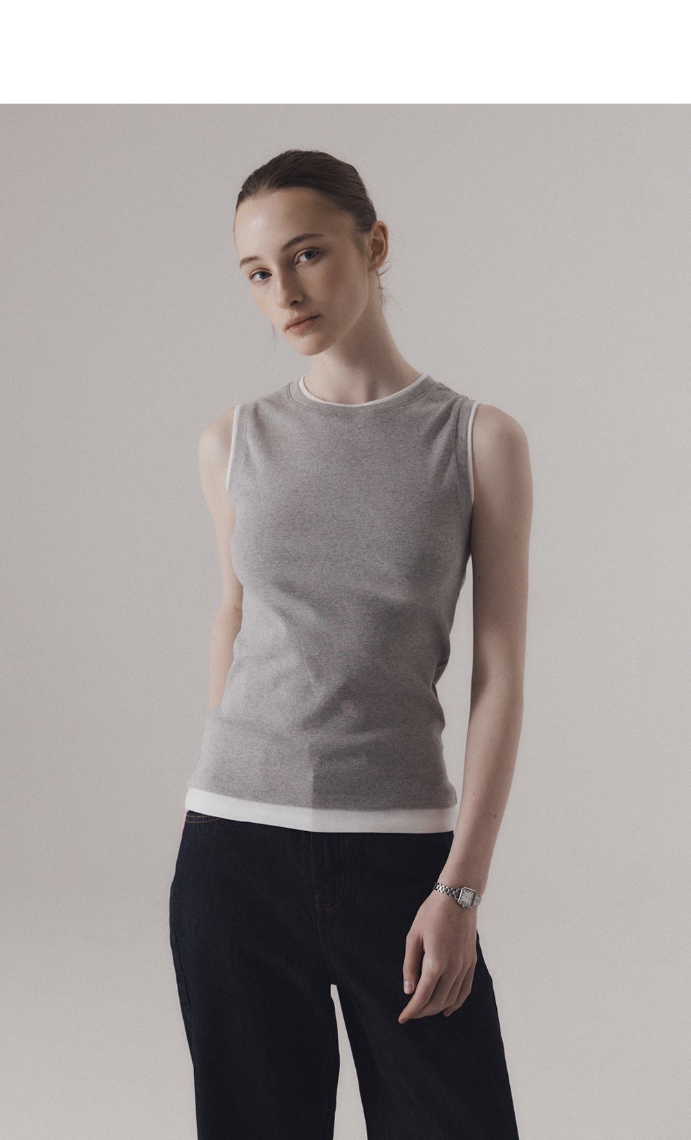 베이직한 실루엣에 감각적인 레이어 디테일을 더한 슬리브리스입니다. 네크라인, 소매단, 밑단에 덧대어진 배색 원단이 마치 이너를 레이어드한듯한 효과를 주며, 단정하면서도 위트 있는 포인트를 완성합니다. 탄탄하면서도 부드러운 후라이스 원단으로 편안한 착용감을 선사하며, 다양한 룩에 데일리로 활용하기 좋은 아이템입니다. 하의 Non-fade classic indigo wide denim (INDIGO)를 착용하였습니다.