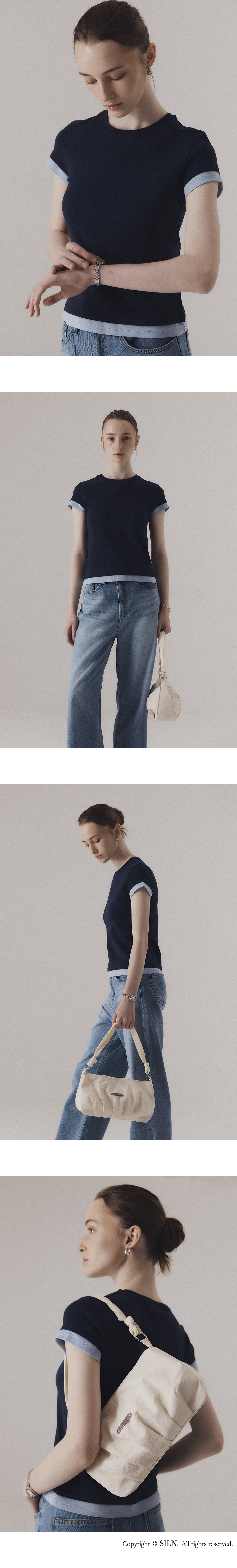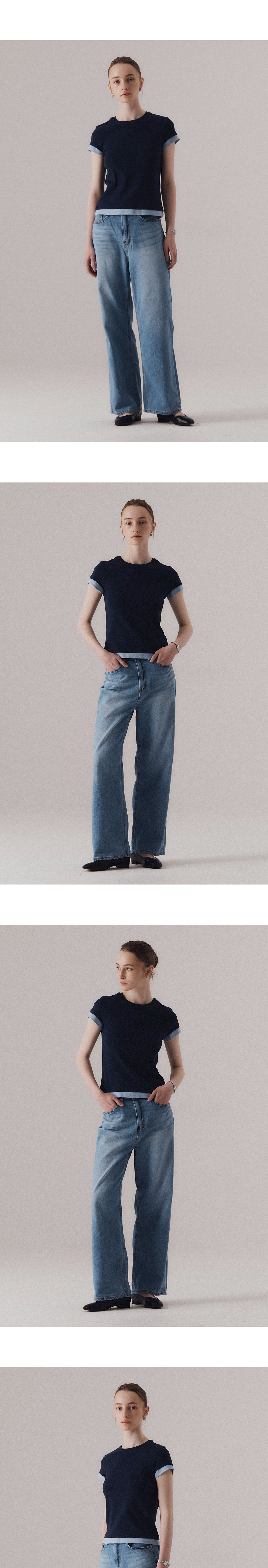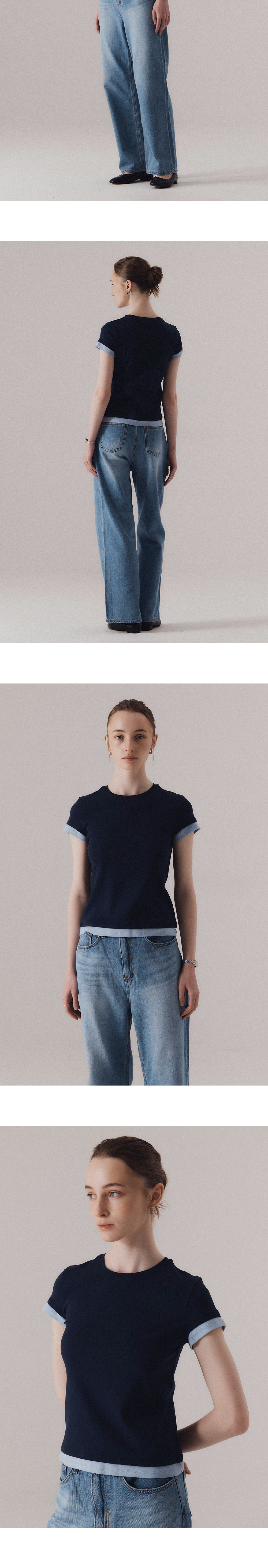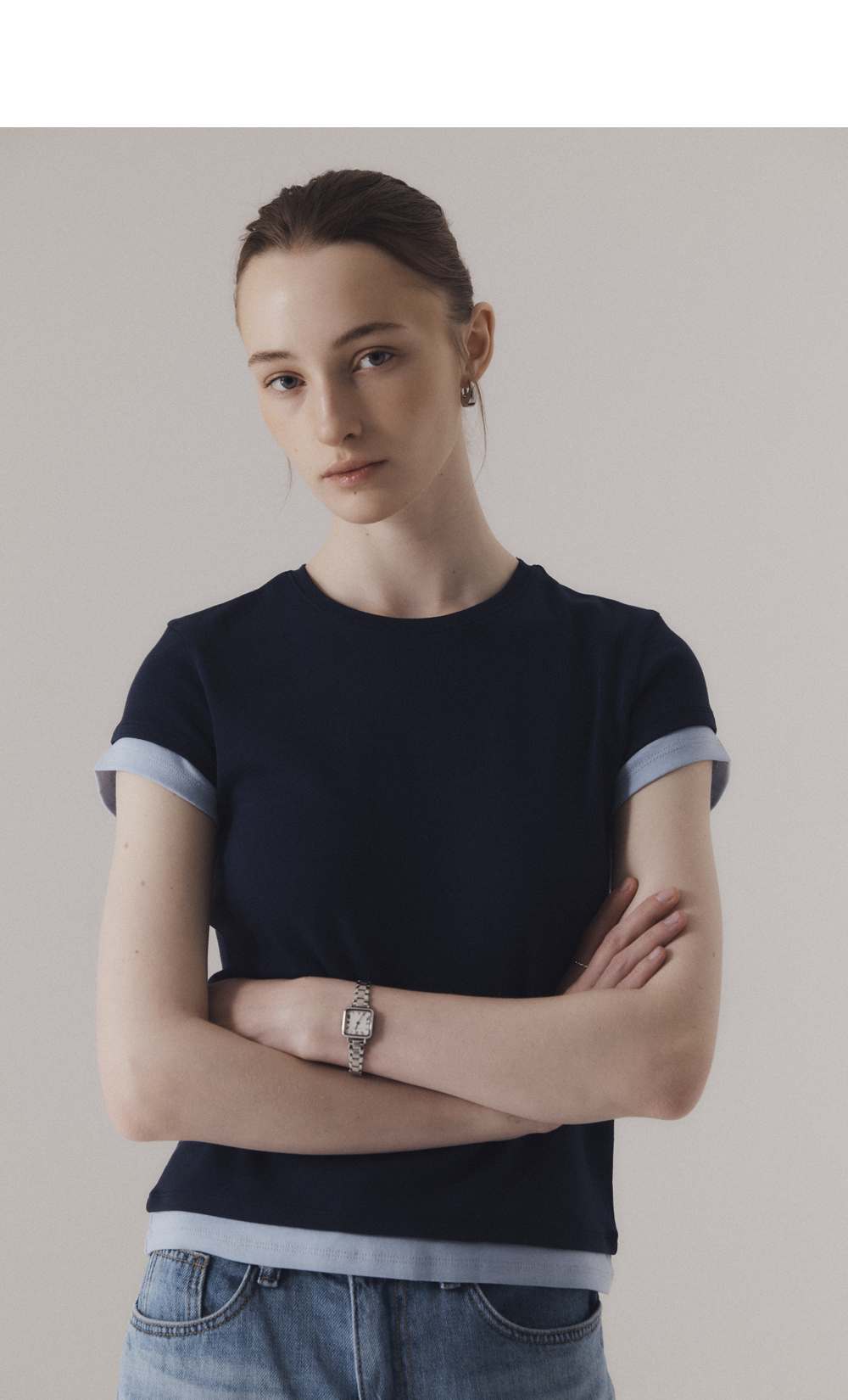 베이직한 무드 속 레이어드 디테일을 더한 반팔 티셔츠입니다. 소매, 밑단에 덧대어진 배색이 이중으로 입은 듯한 시각적 포인트를 줍니다. 탄탄하면서도 부드러운 후라이스 원단을 사용해 착용감이 뛰어나고, 늘어짐 없이 오래도록 깔끔하게 유지됩니다. 베이직하지만 평범하지 않은 실루엣으로, 단독으로도, 이너로도 활용도 높게 스타일링할 수 있습니다. 하의 High-waist classic denim (BLUE)를 착용하였습니다.
