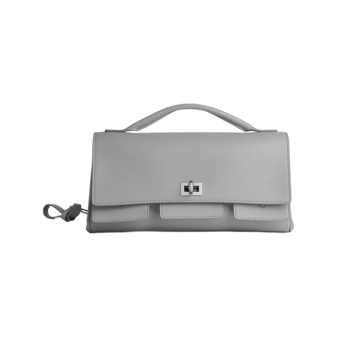 (W) Balenciaga Bel Air Clutch On Strap Small Cloud Grey