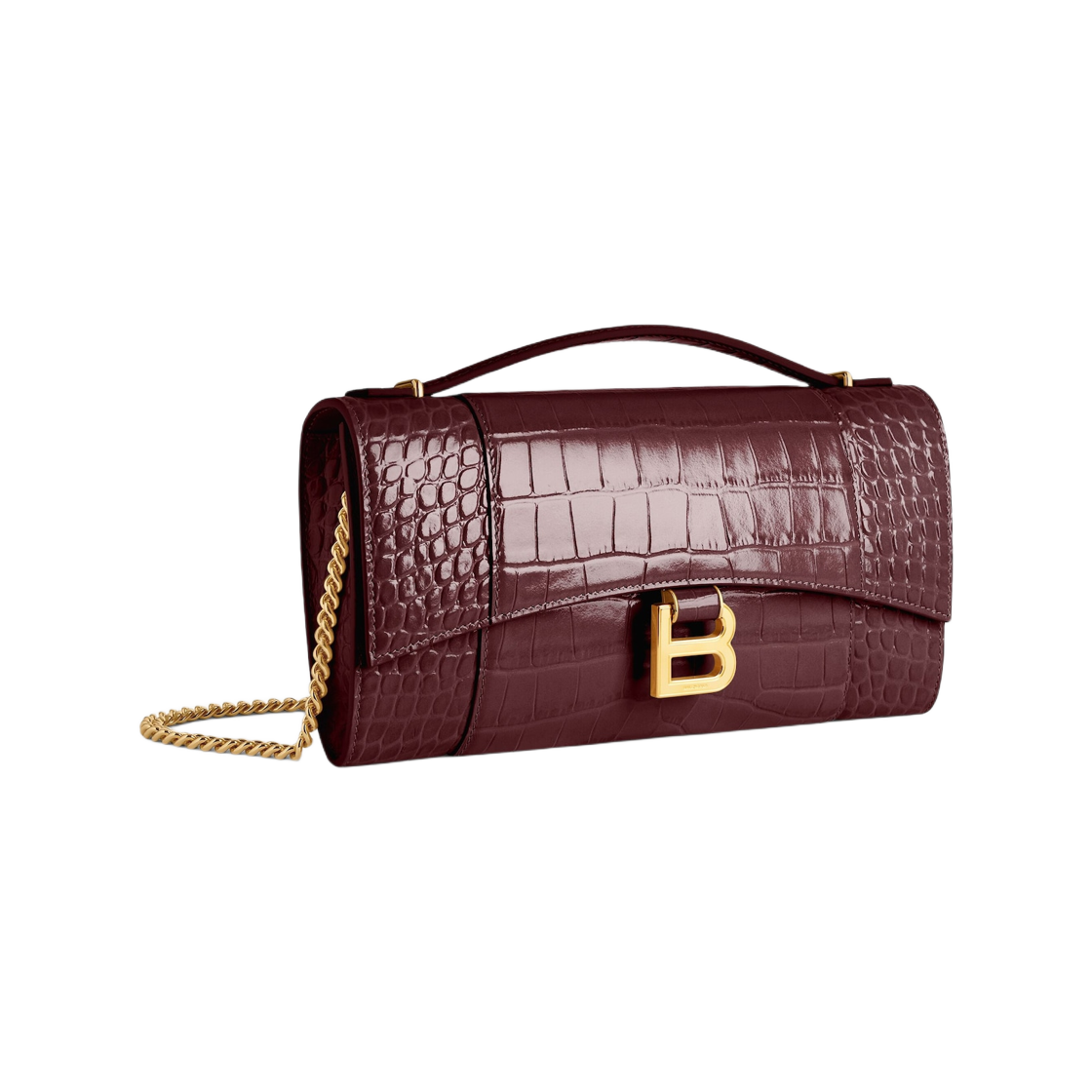 (W) Balenciaga Hourglass Pochette with Chain Dark Burgundy