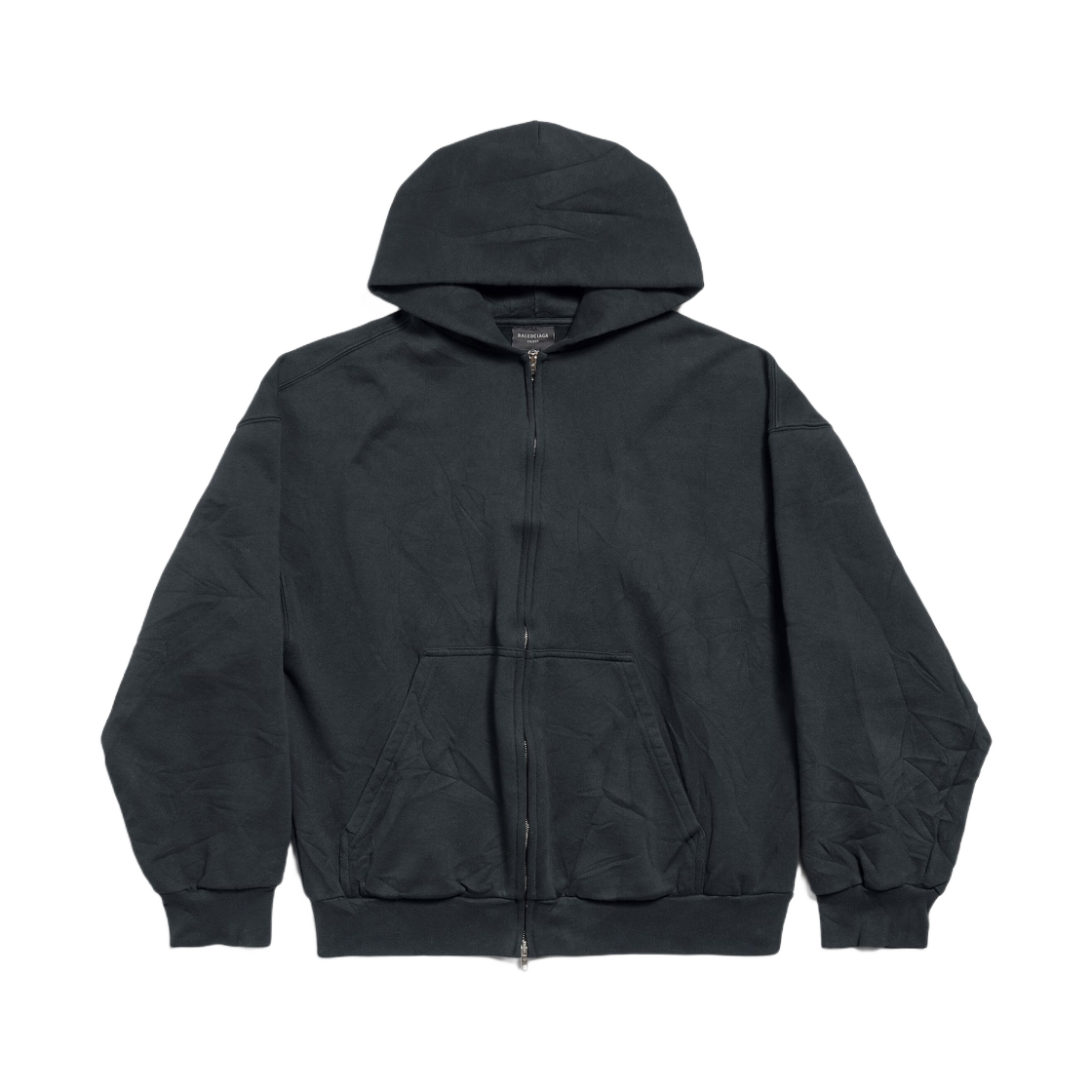 Balenciaga Flipped Uni Zip-Up Hoodie Regular Fit Black Faded Anthracite