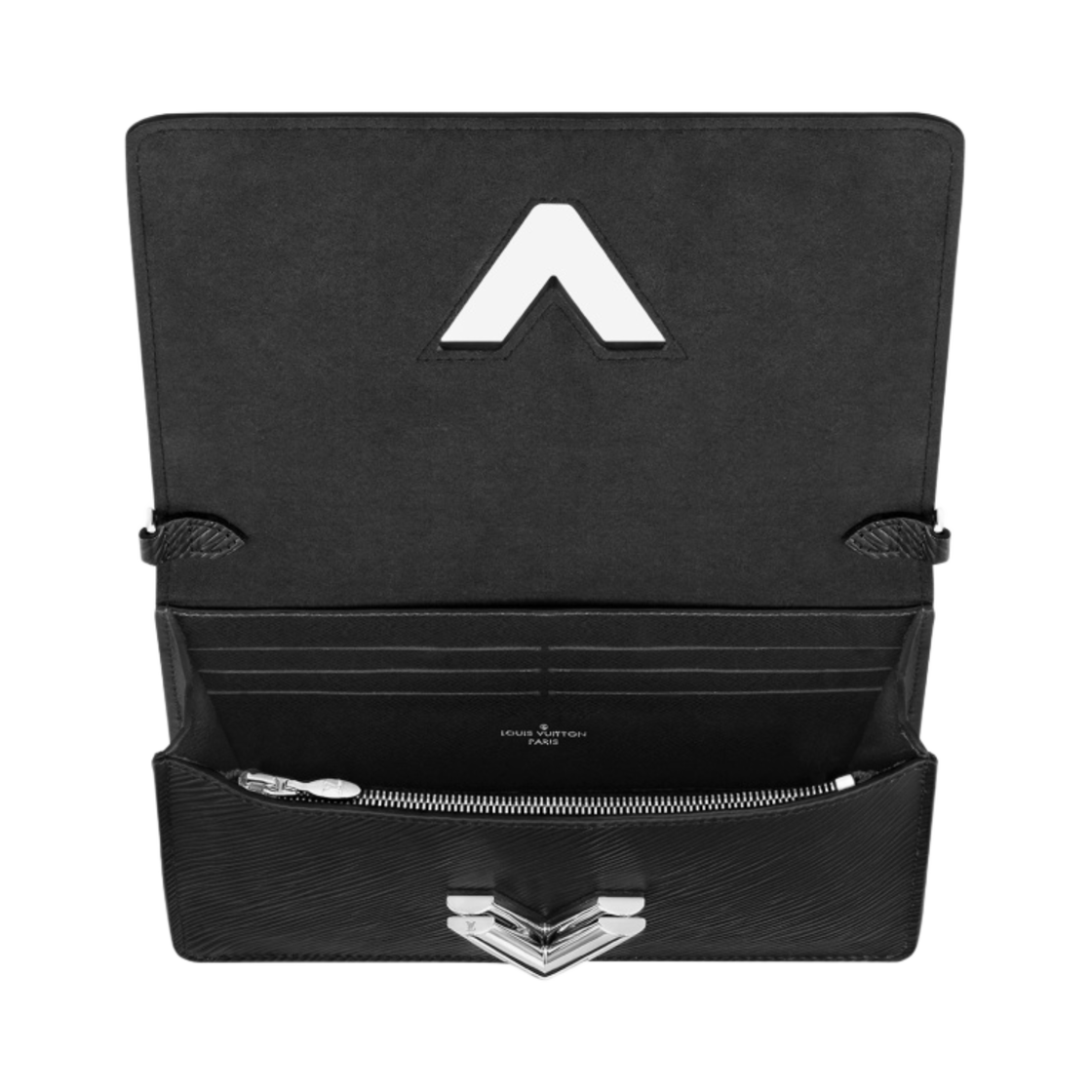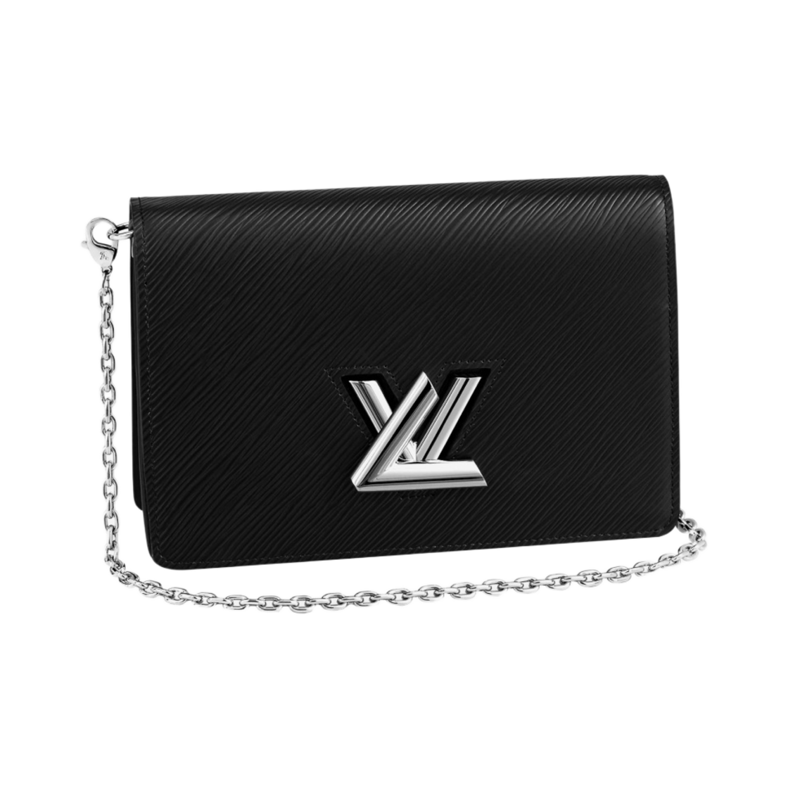 루이비통 트위스트 벨트 체인 월릿 에피 블랙 실버