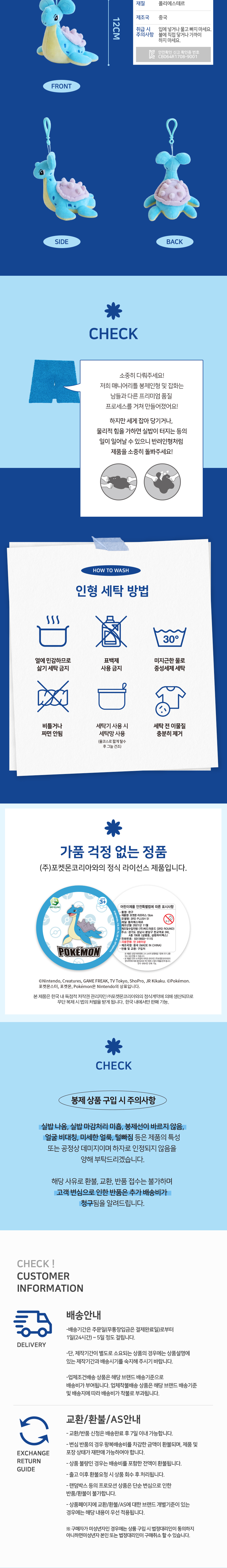 매니어리틀 포켓몬 라프라스 13cm 키링