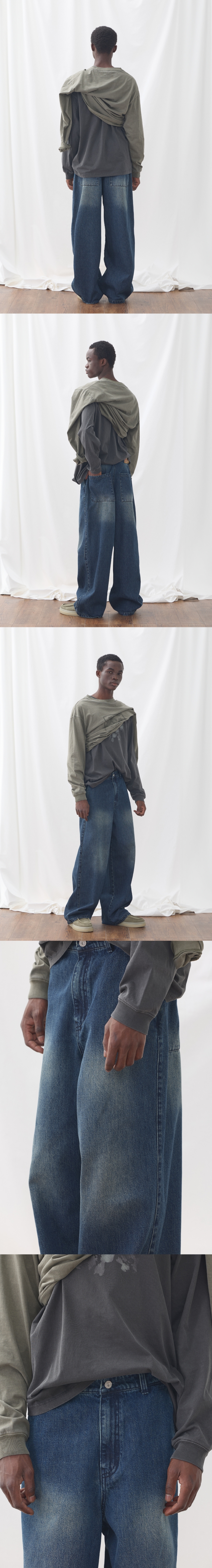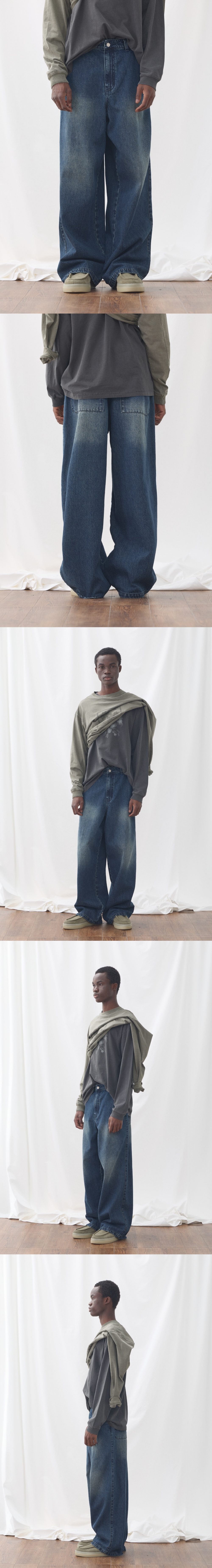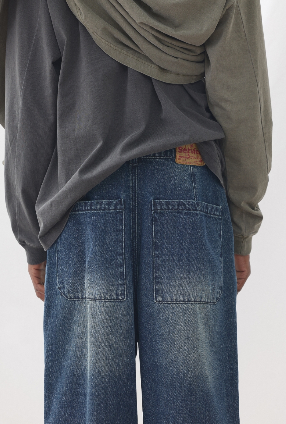 eastserviceshop ESS Washing Wide Denim Pants Mid Blue