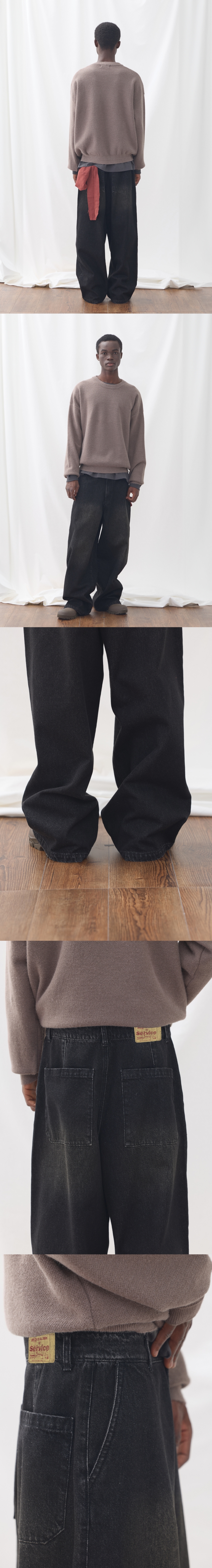 데일리로 활용가능한 빈티지 와이드 데님 팬츠입니다. 바이오 스톤 워싱으로 캐주얼 하면서 빈티지한 무드의 데님 컬러를 연출했습니다. 샌드브러쉬 워싱으로 포인트를 주어 워싱 디테일 추가하였습니다. 택션지는 워싱 후가공 처리하여 이스트서비스샵만의 무드를 제공합니다. 지퍼는 YKK사의 4.5호 금속 지퍼를 사용하였습니다. Shell : Cotton 86% Polyester 14% S : 총장 106.5, 허리단면 38, 엉덩이단면 53, 허벅지단면 37.6, 밑위길이 34.2, 밑단단면 28 M : 총장 108.5, 허리단면 40.5, 엉덩이단면 55.5, 허벅지단면 39, 밑위길이 35, 밑단단면 29 L : 총장 110.5, 허리단면 43, 엉덩이단면 58, 허벅지단면 40.4, 밑위길이 35.8, 밑단단면 30 Model (Men1) : 184cm, 상의 M사이즈 하의 48 착용 Model (Men2) : 183cm, 상의 M사이즈 하의 48 착용