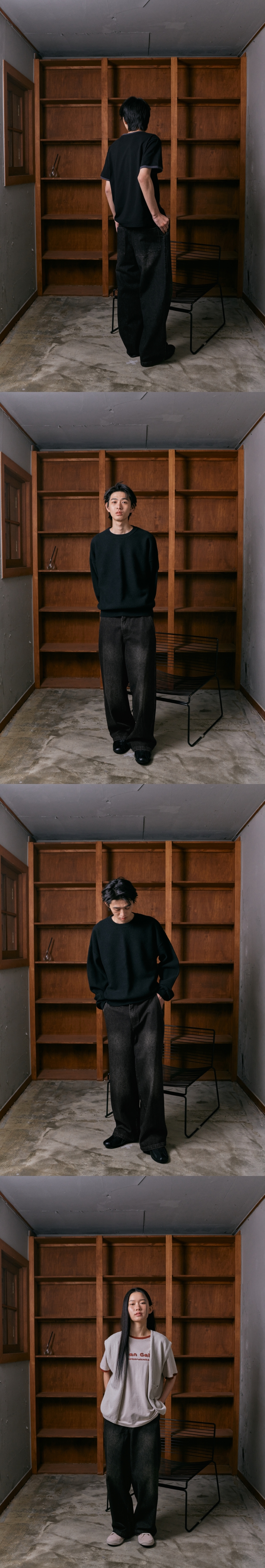 이스트서비스샵 ESS 워싱 와이드 데님 팬츠 블랙