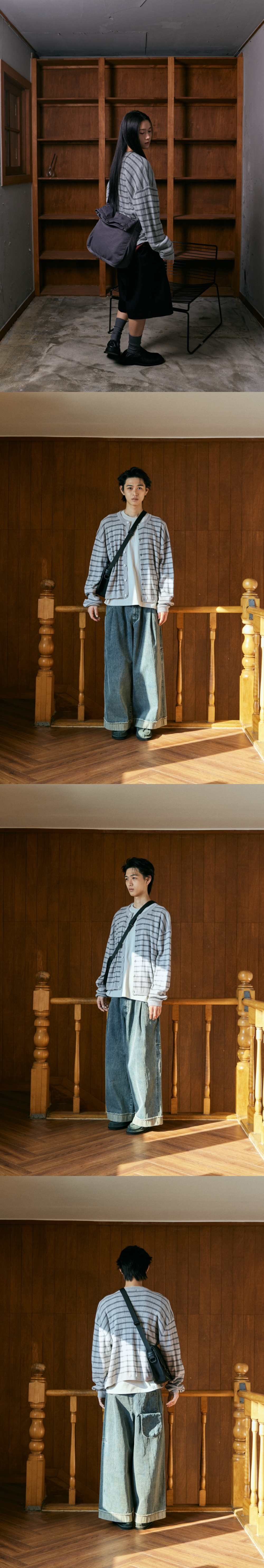 - 스트라이프 배색의 6버튼 라운드 가디건 - 간절기에 적합한 두께감의 니트 코튼 원단으로 편직 - 부드러운 착용감과 여유롭지만 크롭한 핏으로 다양한 코디에 포인트로 연출 가능 Shell : Coton 100% S : 총장 57, 어깨단면 51.5, 가슴단면 53, 밑단단면 44 M : 총장 59, 어깨단면 53, 가슴단면 57, 밑단단면 48 L : 총장 61, 어깨단면 54.5, 가슴단면 61, 밑단단면 52