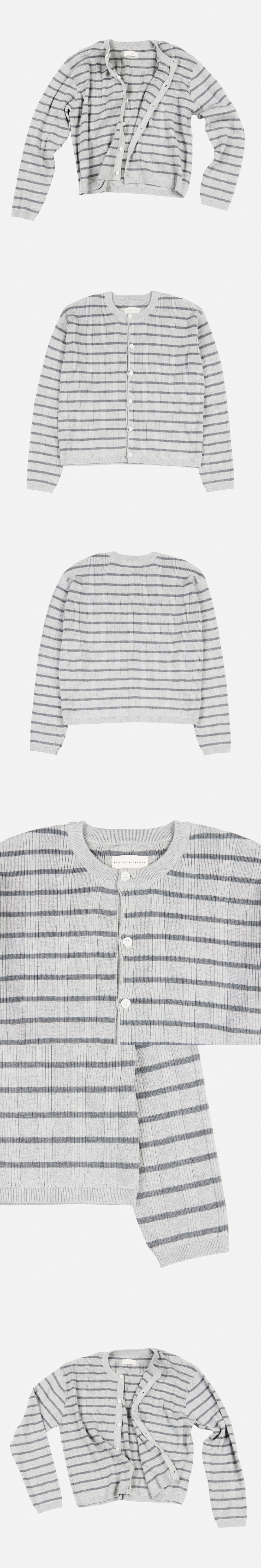 eastserviceshop ESS Stripe Crop Cardigan Grey