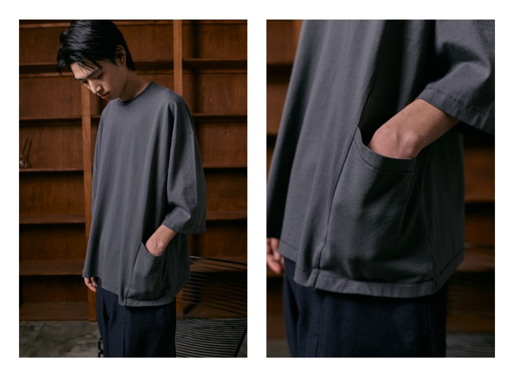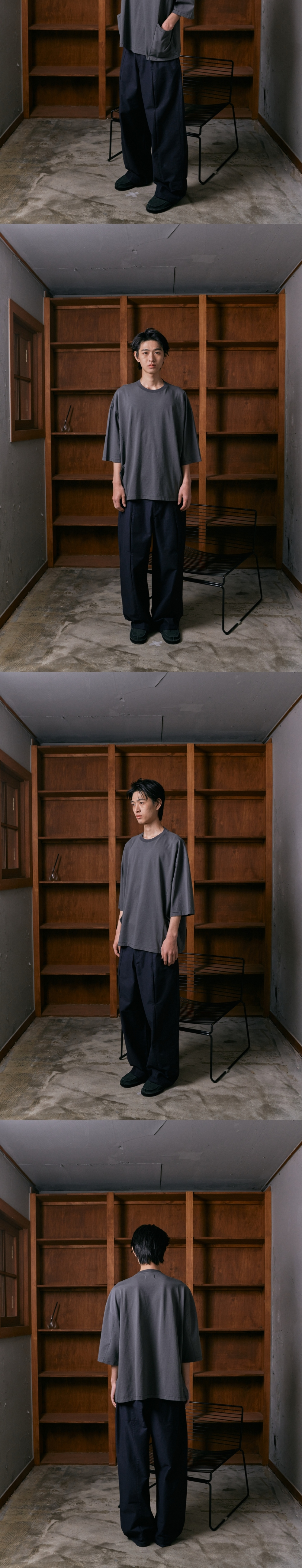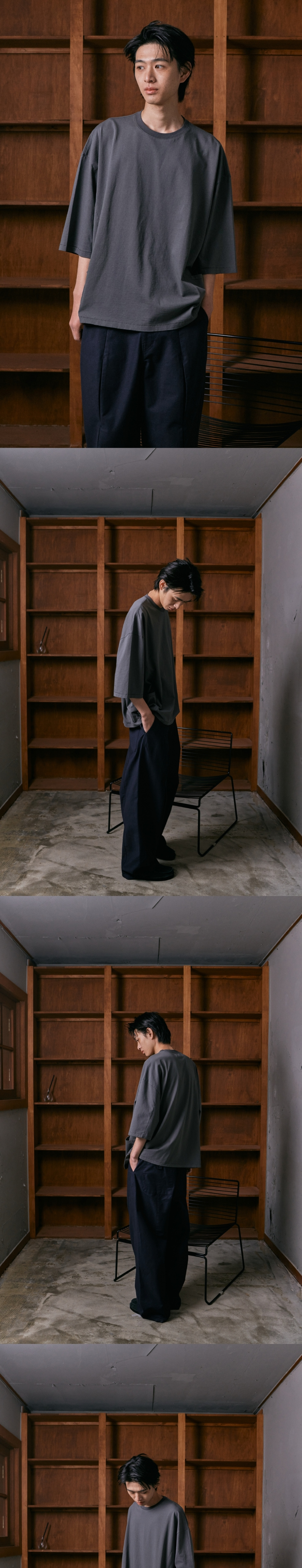 eastserviceshop Incision Side Pocket Half T-Shirt Charcoal