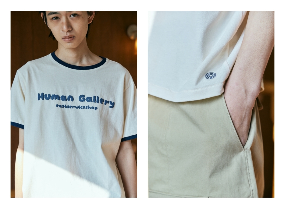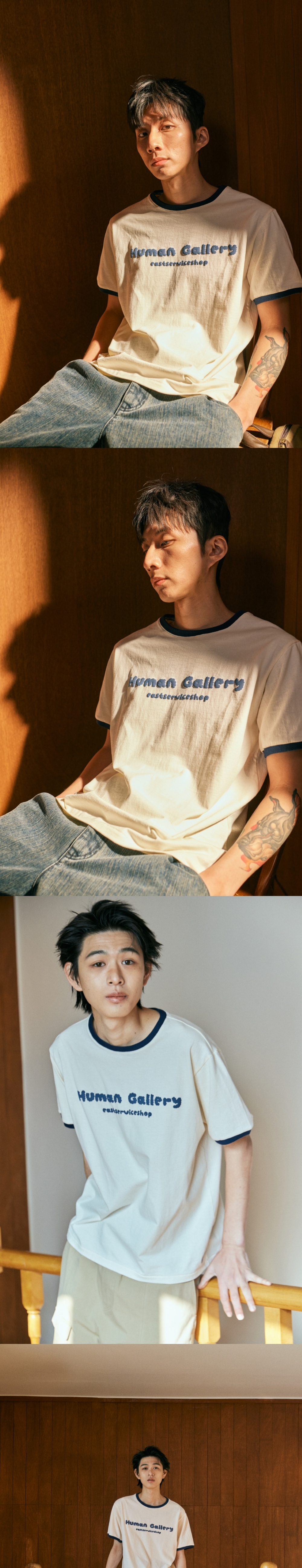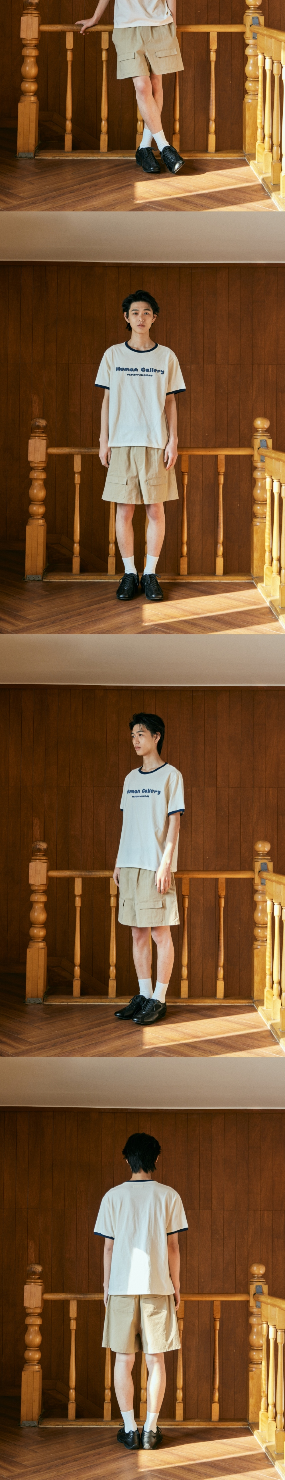 eastserviceshop ESS Logo Ringer Half T-Shirt Cream
