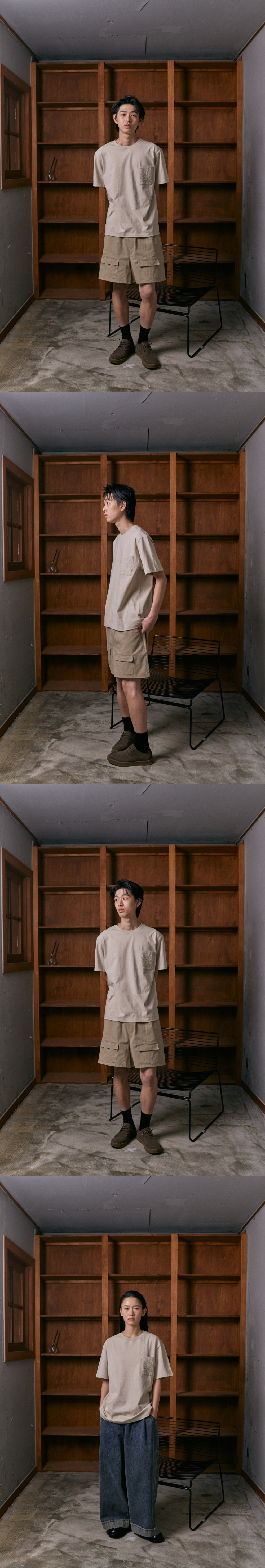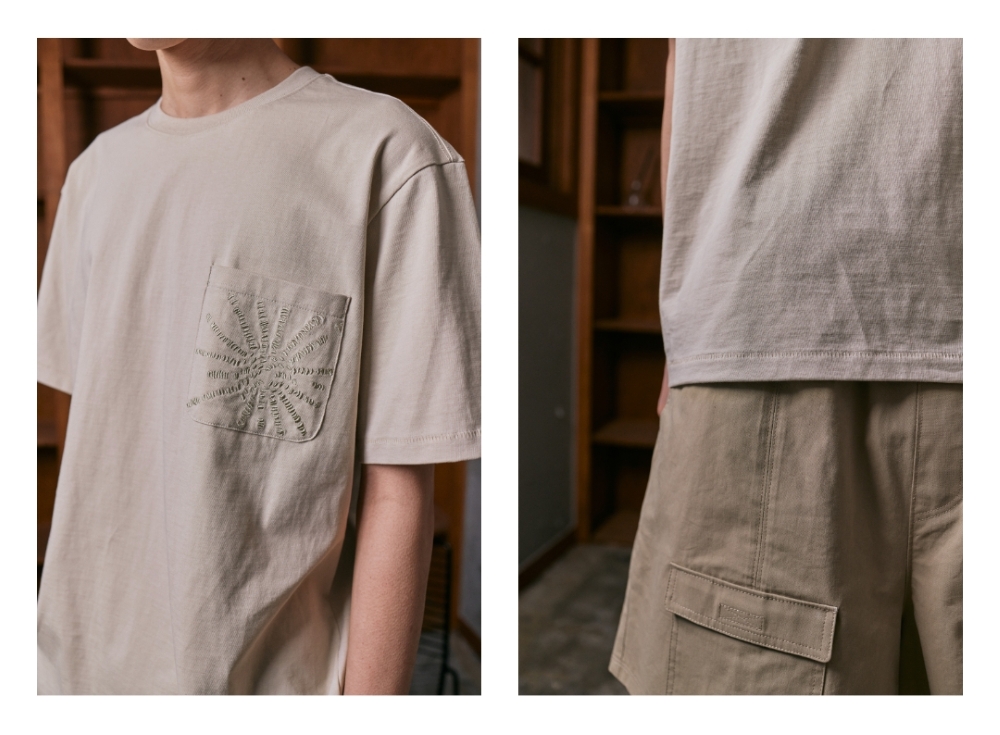 - 가슴 포켓 자수 디테일 - 체형을 타지않는 릴렉스핏의 패턴짜임 - 20수 싱글원단사용 Shell : 코튼 100% S : 총장 67, 어깨단면 47, 가슴단면 54, 소매길이 22, 밑단단면 54 M : 총장 69, 어깨단면 49, 가슴단면 56, 소매길이 23, 밑단단면 56 L : 총장 71, 어깨단면 51, 가슴단면 58, 소매길이 24, 밑단단면 58 모델1(남) 182cm 상의 L 하의 48 모델2(남) 177cm 상의 L 하의 48 모델3(여) 165cm 상의 M 하의 46