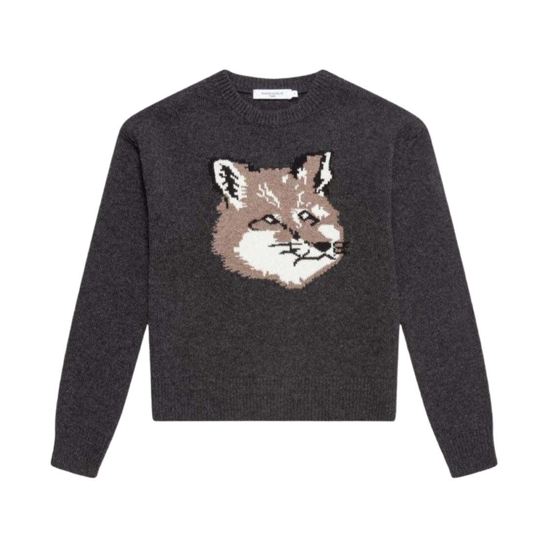 (W) Maison Kitsune Big Fox Head Pullover Knit Dark Grey Melange - Ssense Exclusive