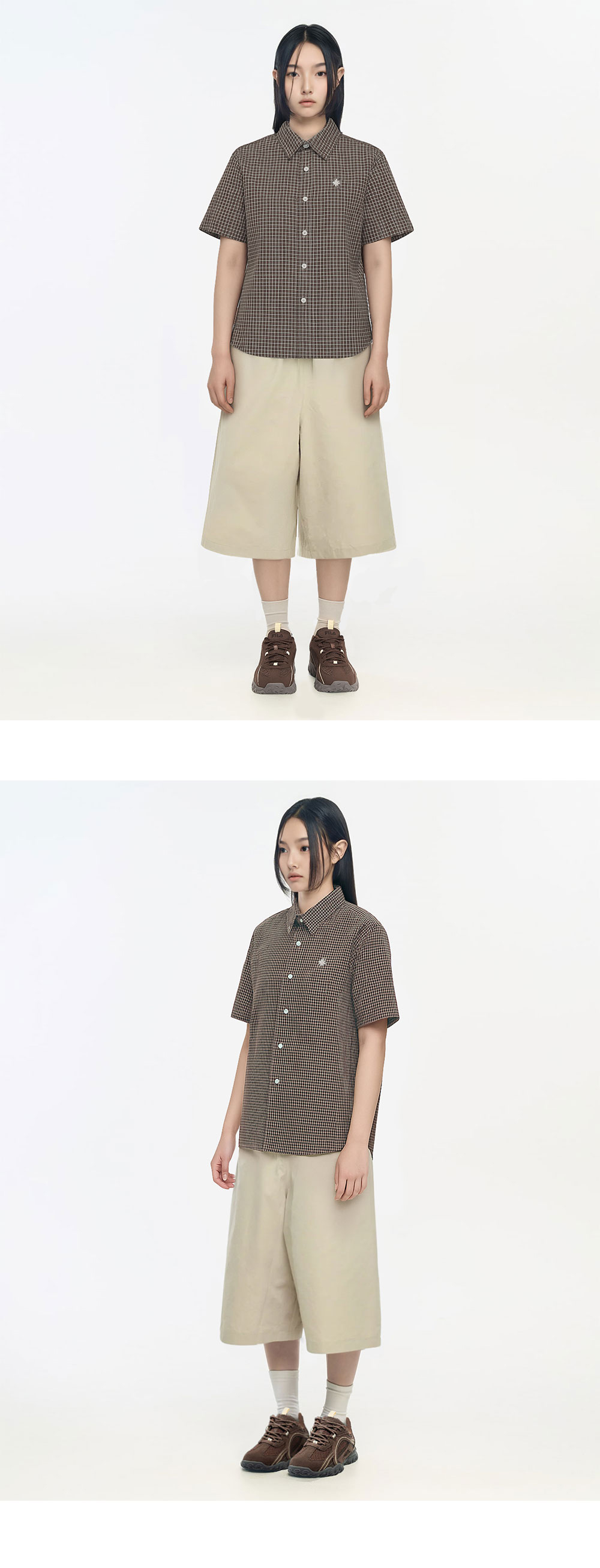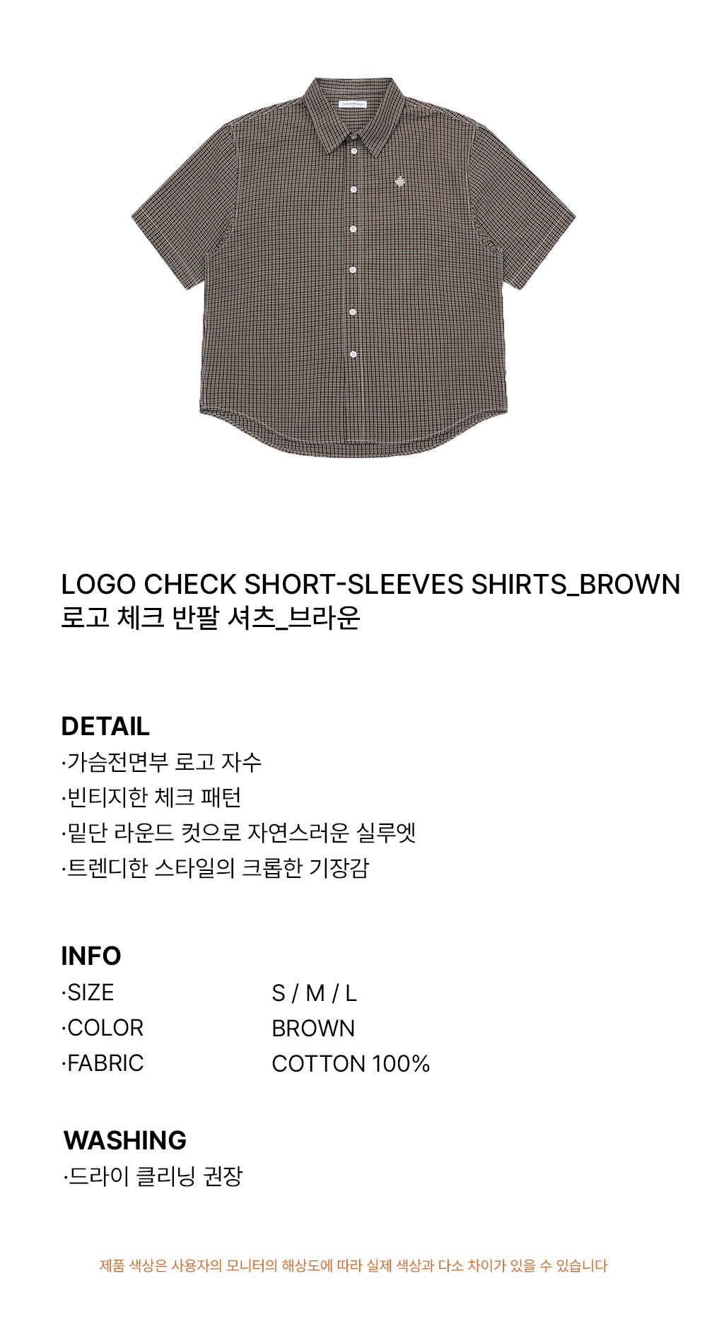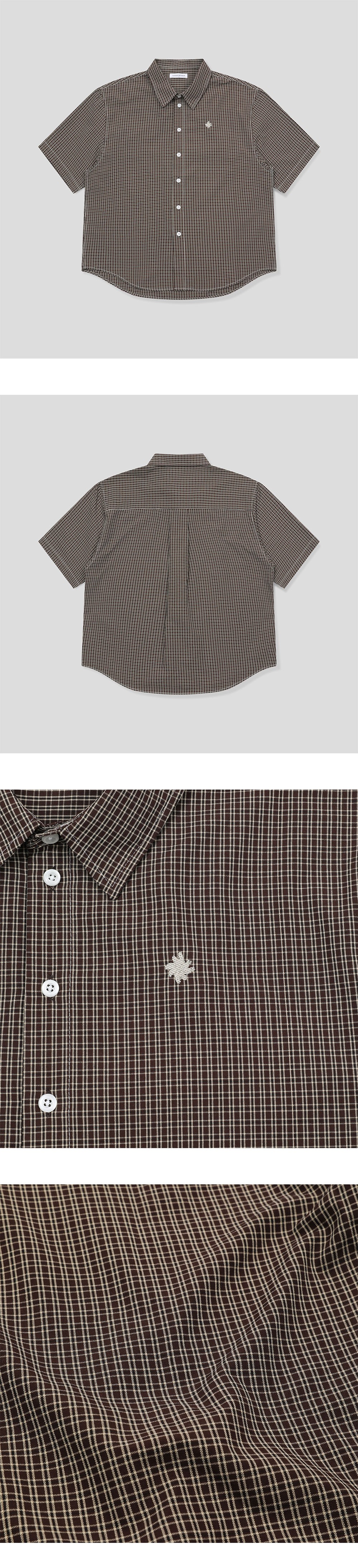슬로우 레코드 하우스 로고 체크 반팔 셔츠 브라운