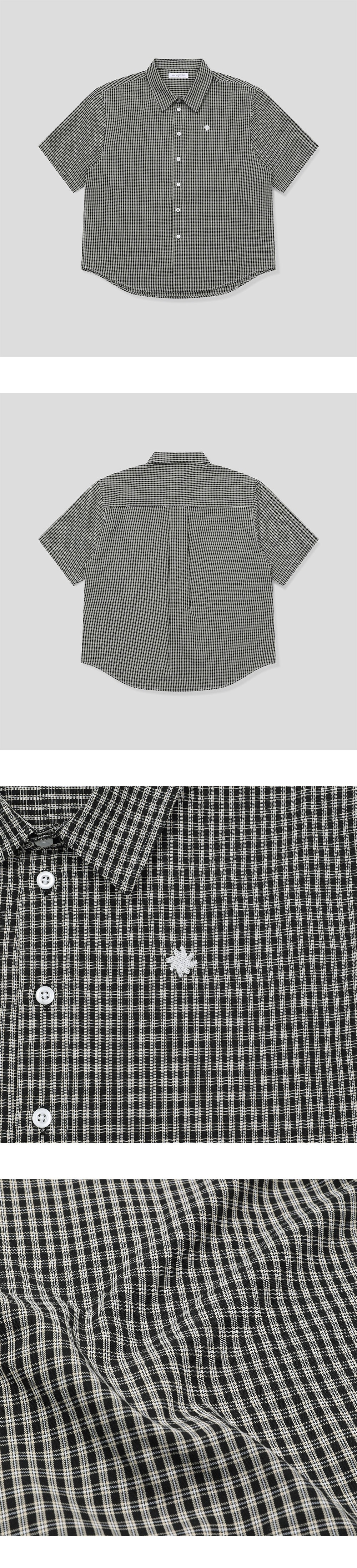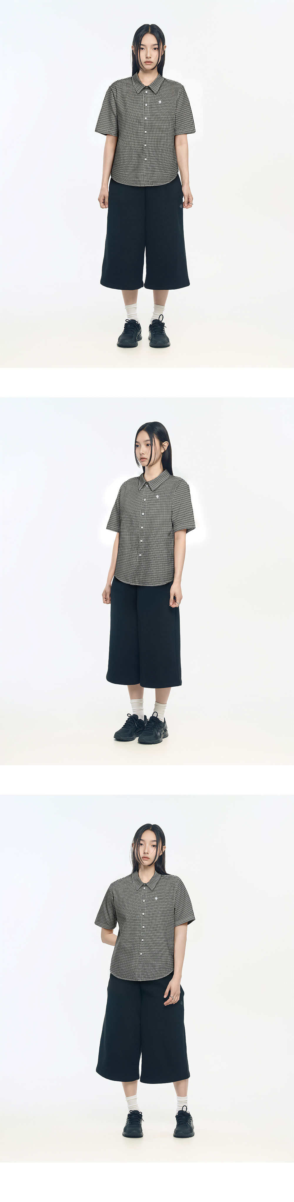 SLOW RECORD HOUSE Logo Check Short Sleeve Shirt Black