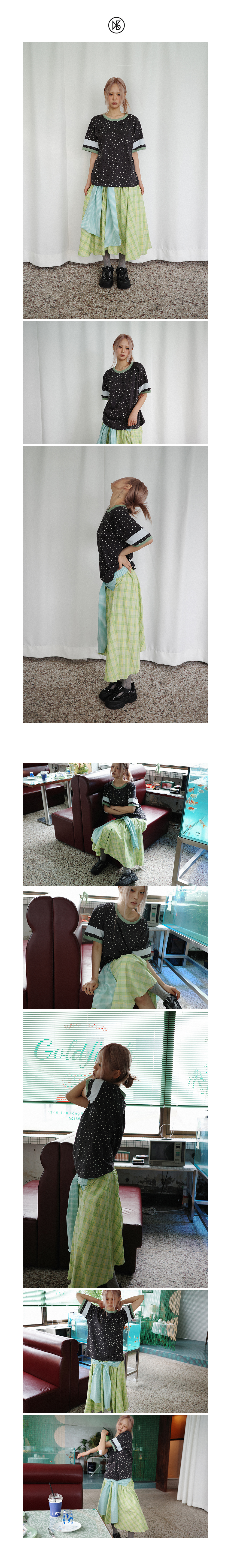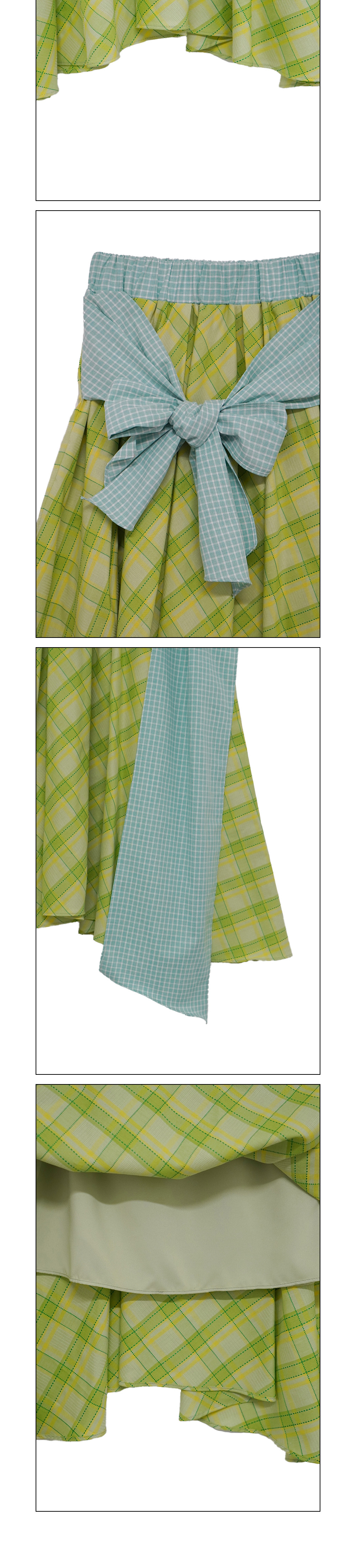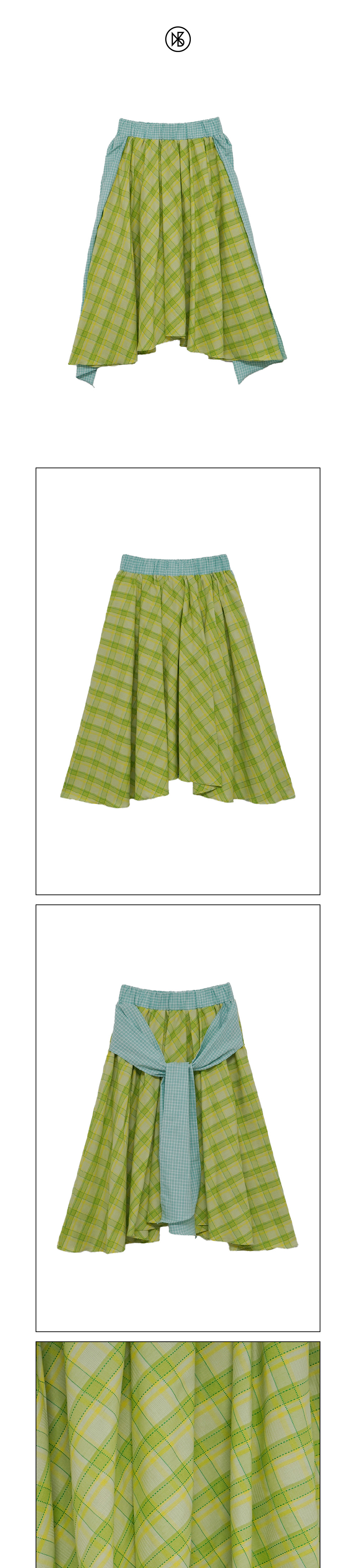쿠키시 체크 타이 배색 스커트 옐로위시 그린