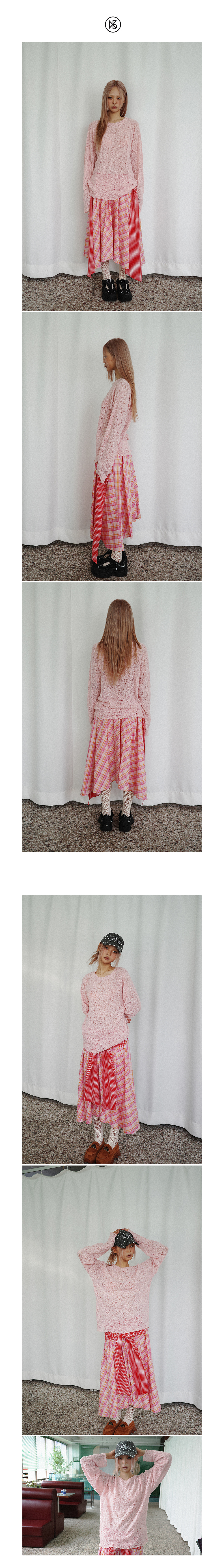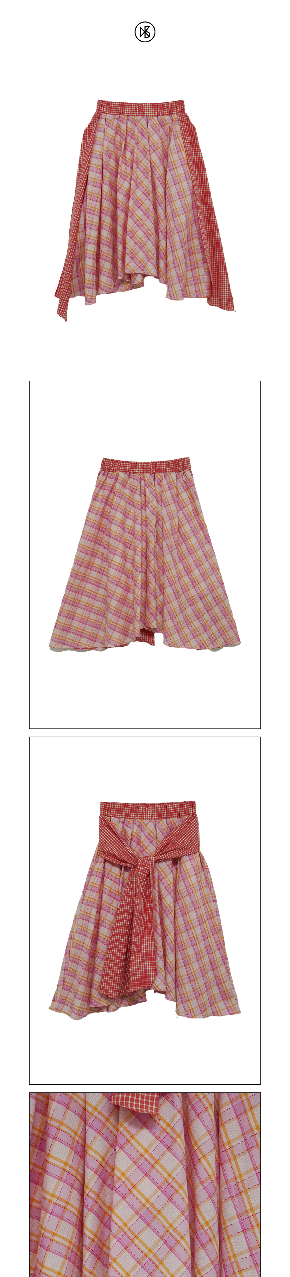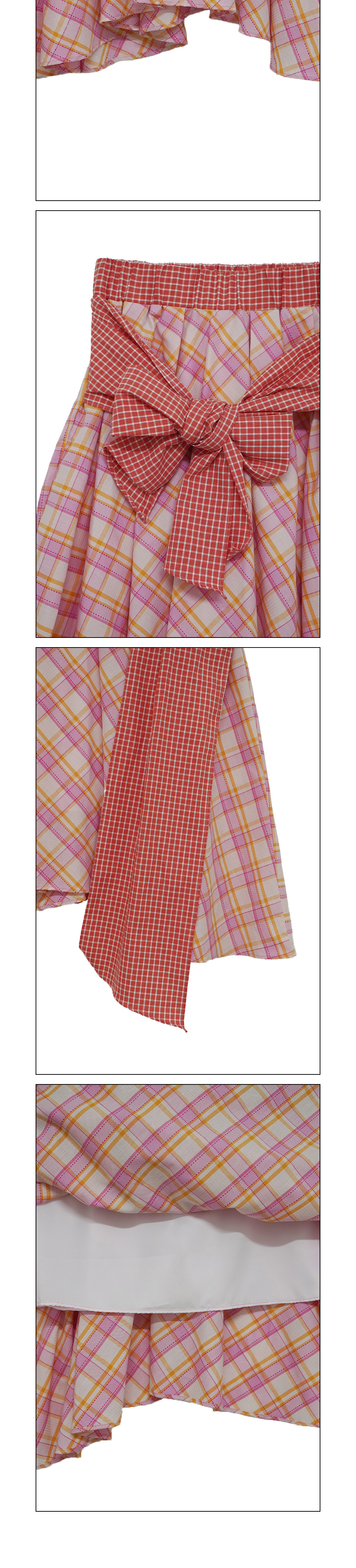 쿠키시 체크 타이 배색 스커트 핑크