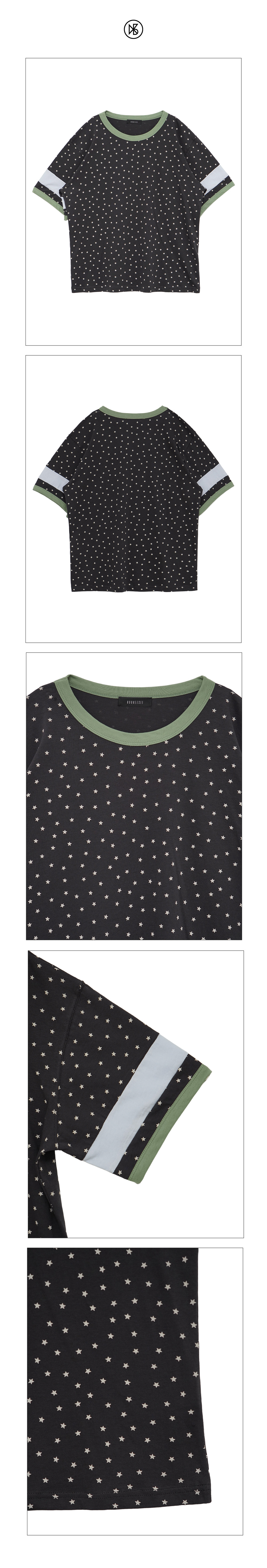 쿠키시 별 배색 링거 반팔 티셔츠 차콜