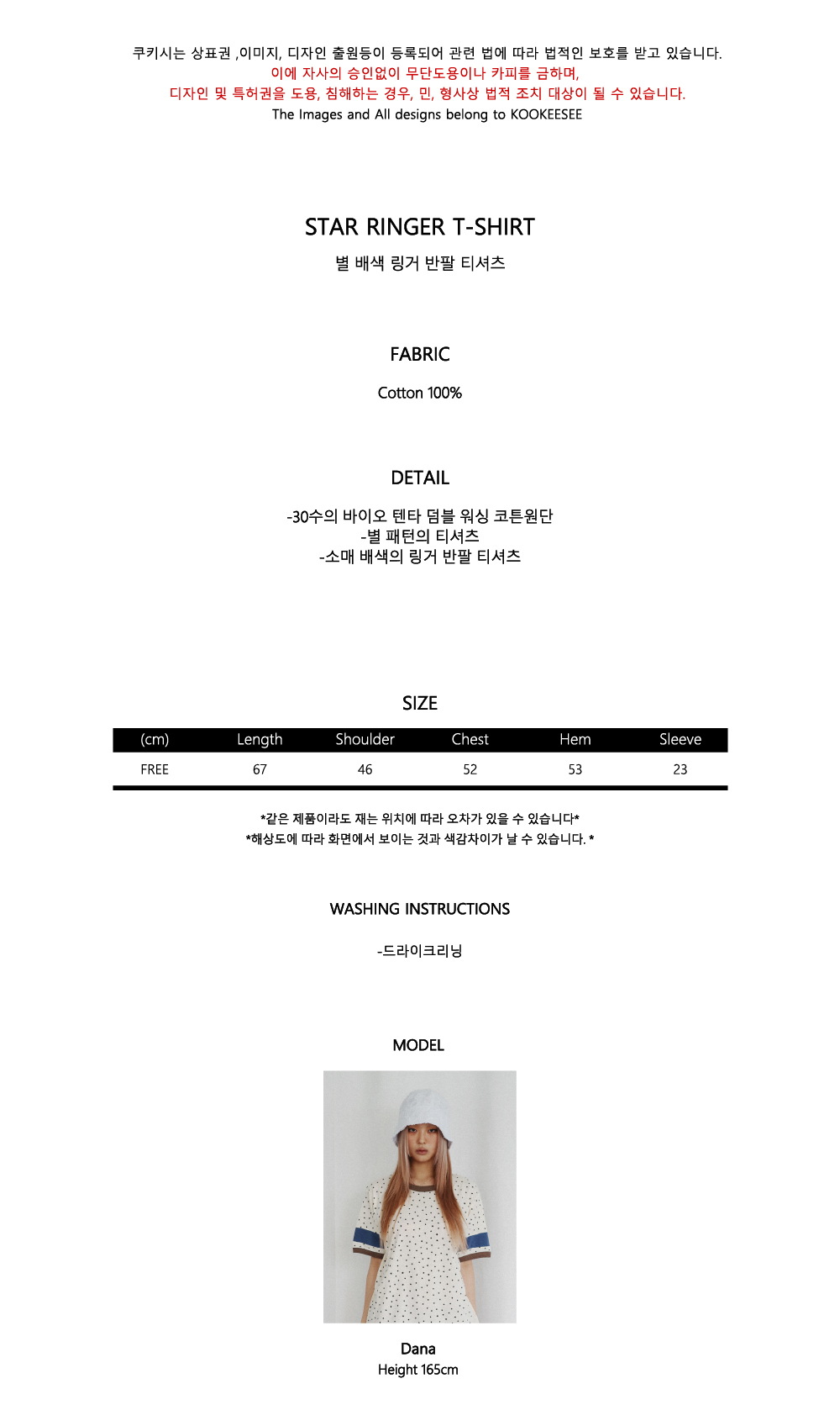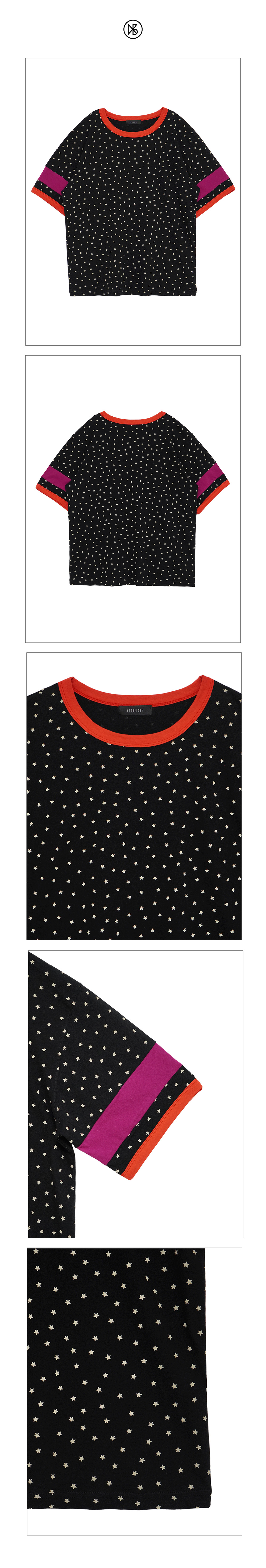 쿠키시 별 배색 링거 반팔 티셔츠 블랙